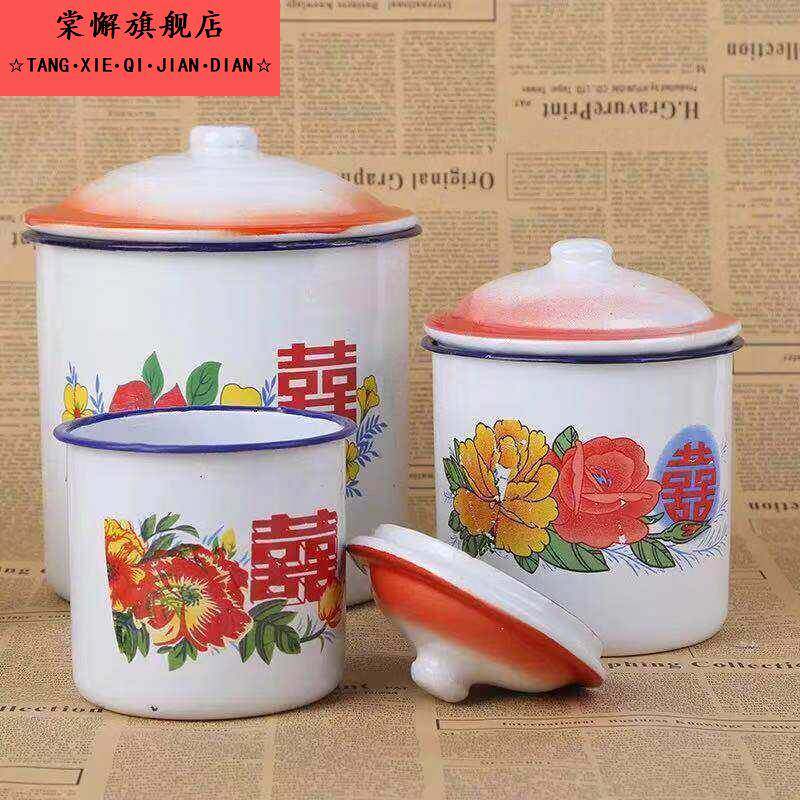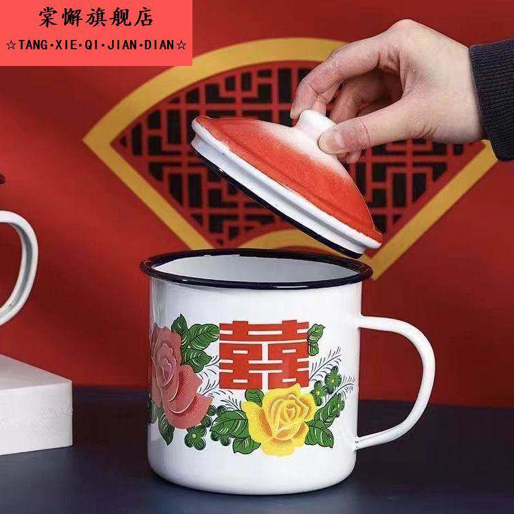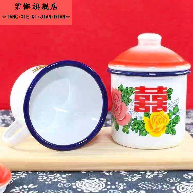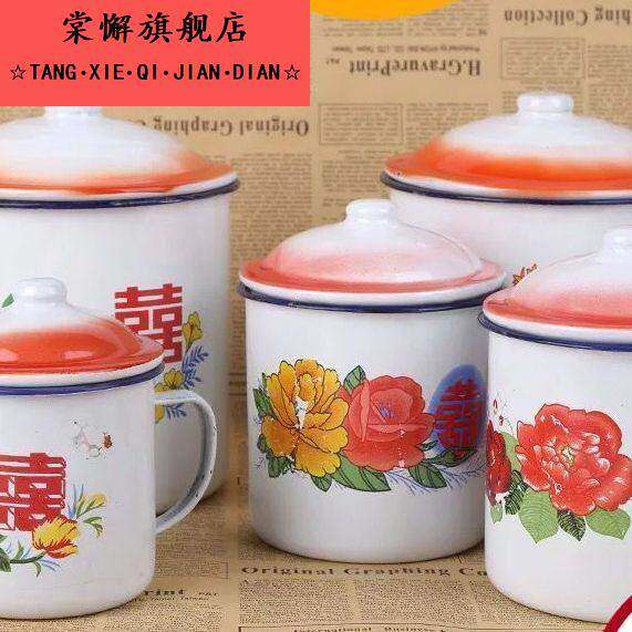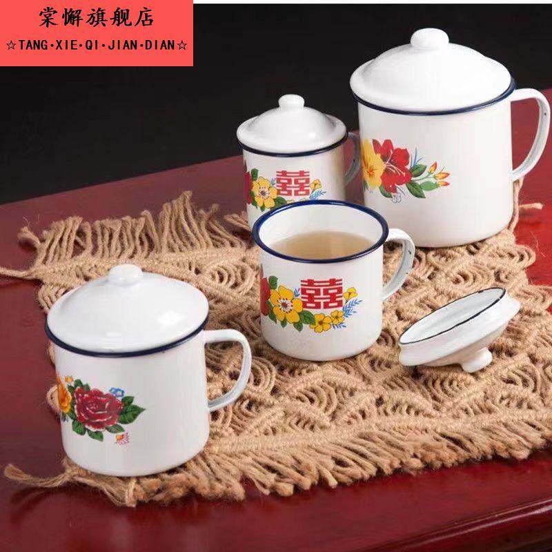 📚 搪瓷杯怀旧经典大茶缸子老式铁水杯洋瓷双喜老干部茶杯口杯搪瓷缸