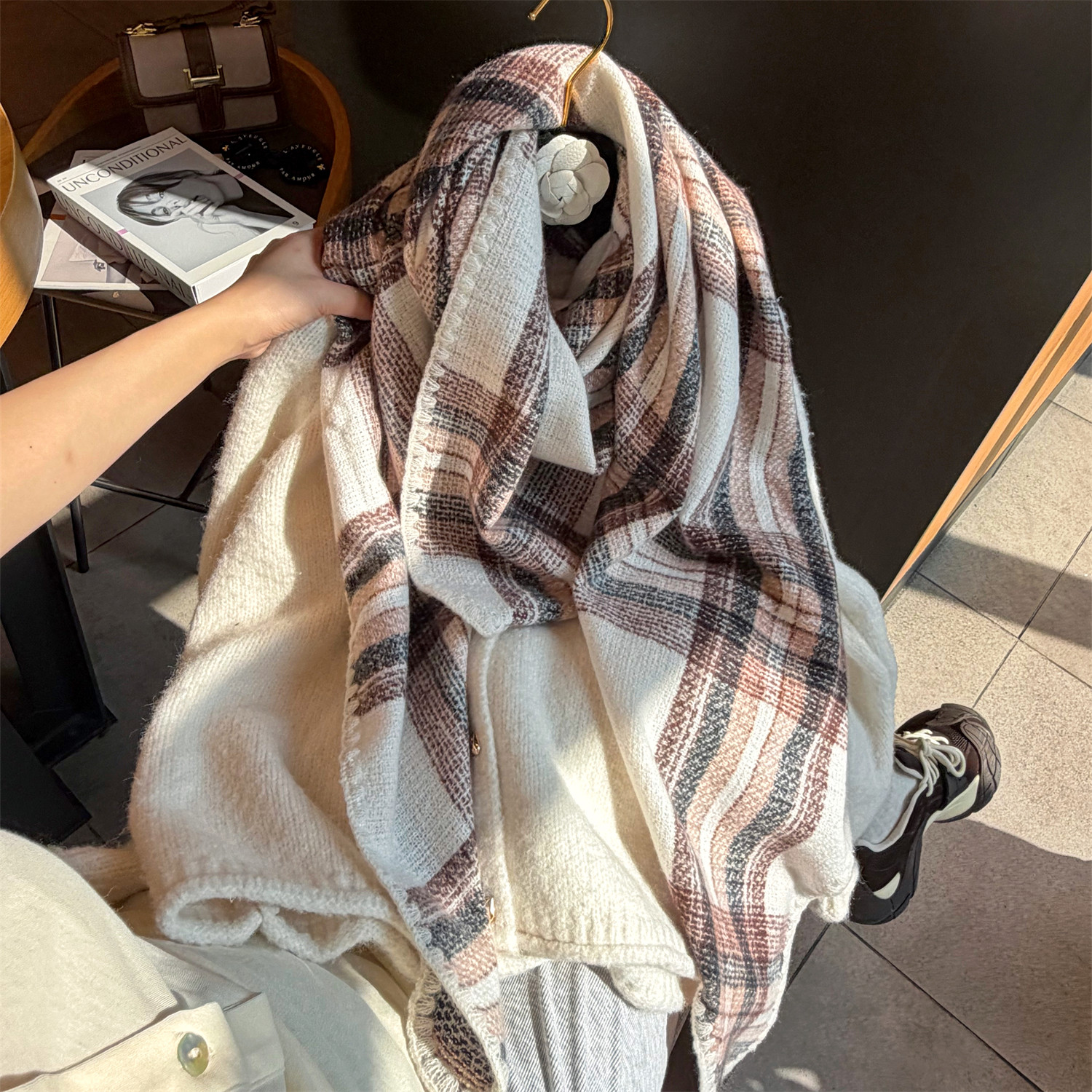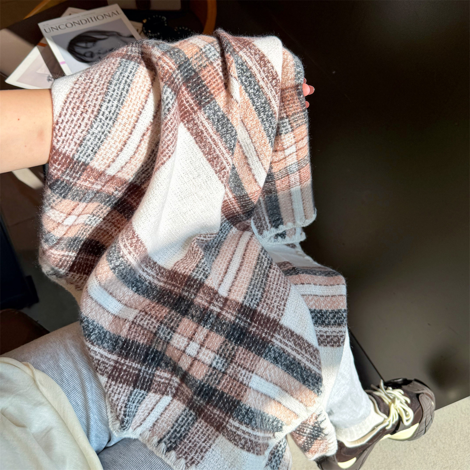 📚 2025秋冬新款轻奢格纹仿羊绒三角巾女时尚保暖围巾高档送礼大披肩
