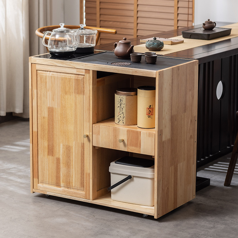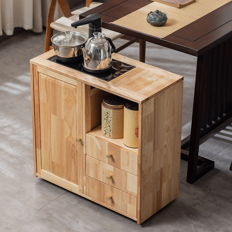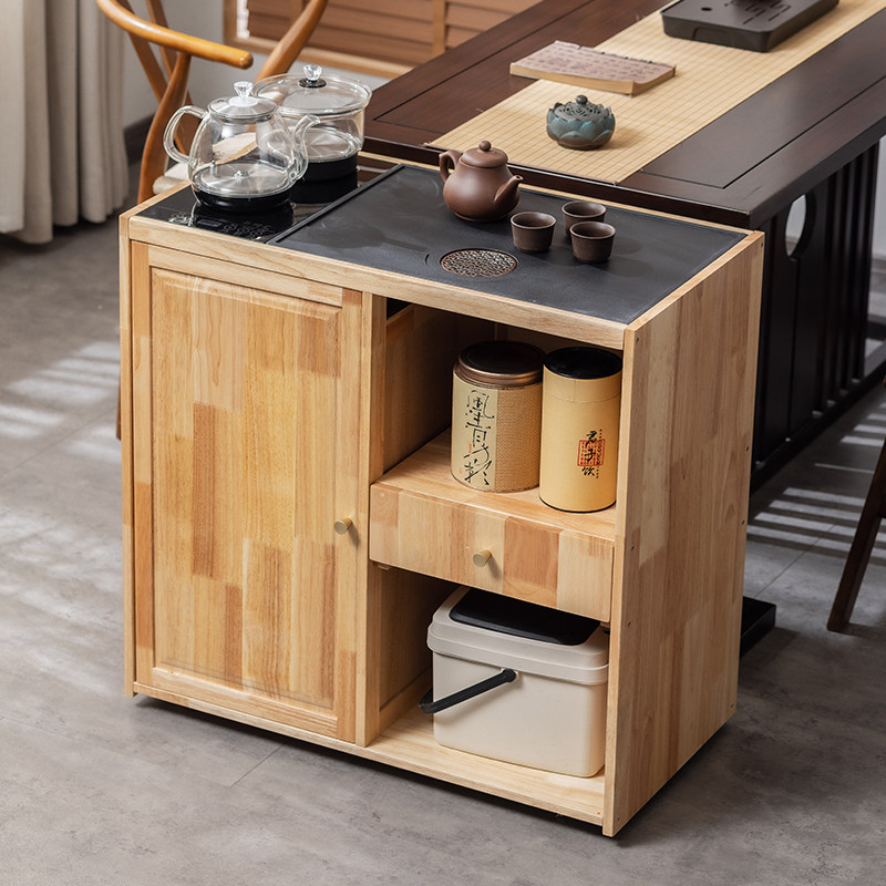 📚 实木茶水柜烧水柜客厅茶室茶水台茶边柜烧水壶一体可移动沙发边几
