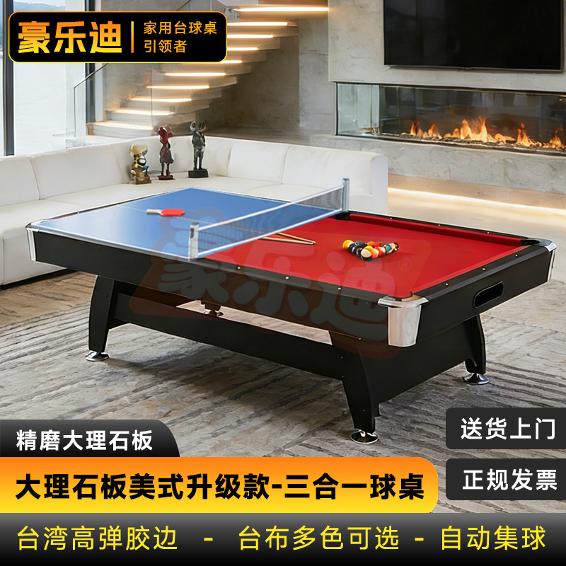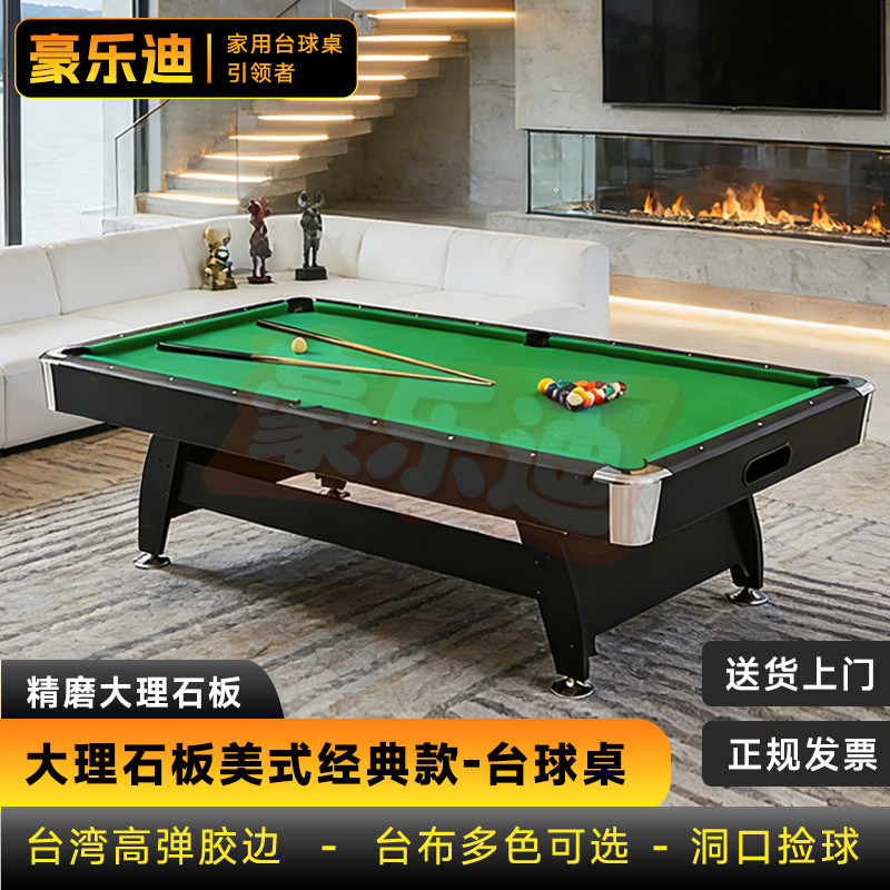 📚 台球桌家用标准型美式黑八室内桌球台成人商用大理石九球三合一