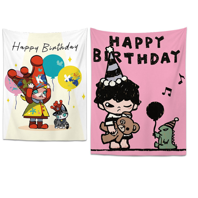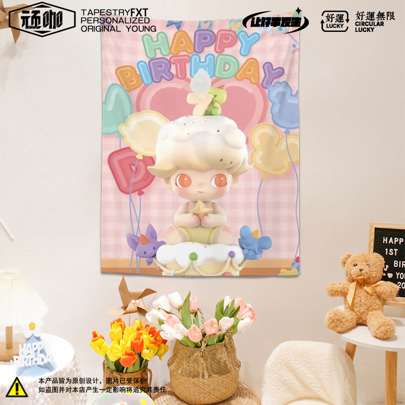📚 泡泡码特拉布布茉莉生日氛围感挂布挂毯装饰画可爱卡通儿童派对
