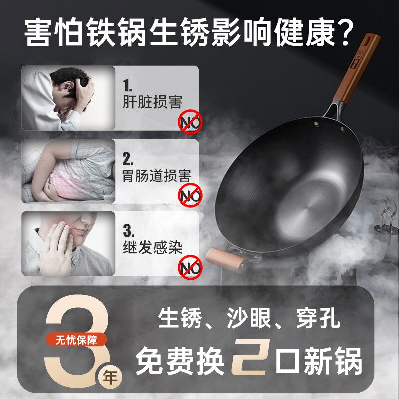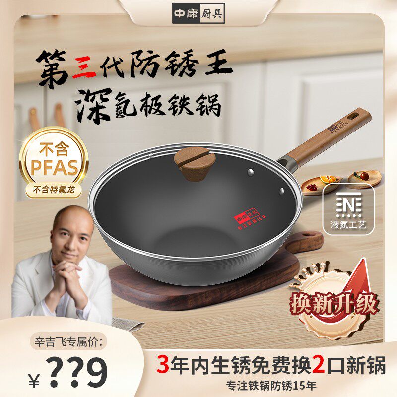 📚 中康【辛吉飞专享】没有一丁点涂层铁锅家用不生锈全炉灶可用免开