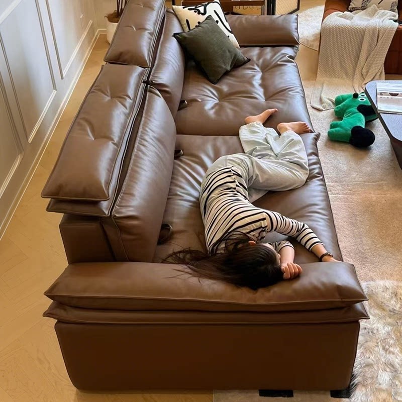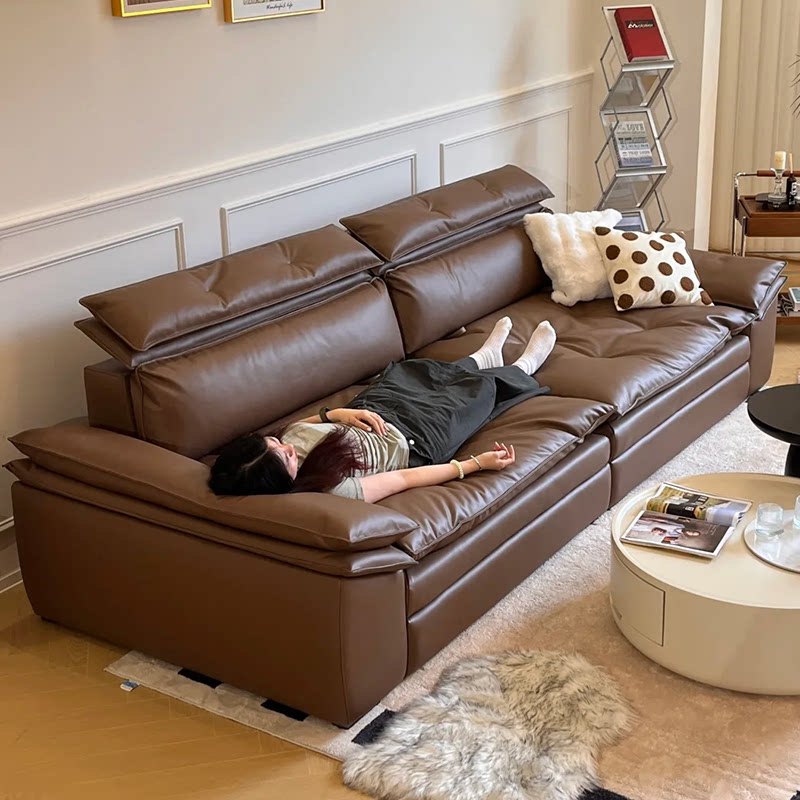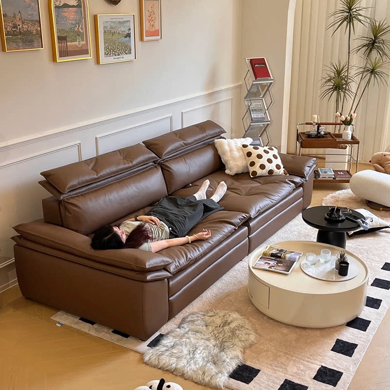 📚 真皮沙发客厅2026新款可调节超深坐宽棕色意式极简头层牛皮沙发