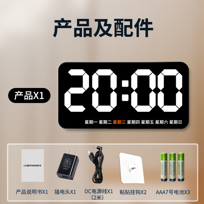 📚 电子钟数字时钟壁挂式插电长亮led大屏时间显示器桌面钟表夜光墙