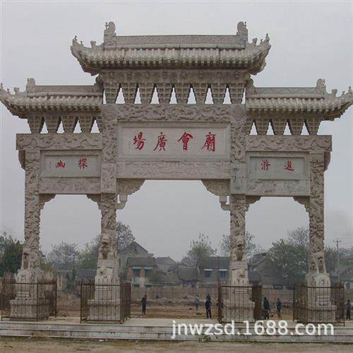 📚 古建筑石头大门加工广场石材大门制作价格墓园仿古石雕大门图样