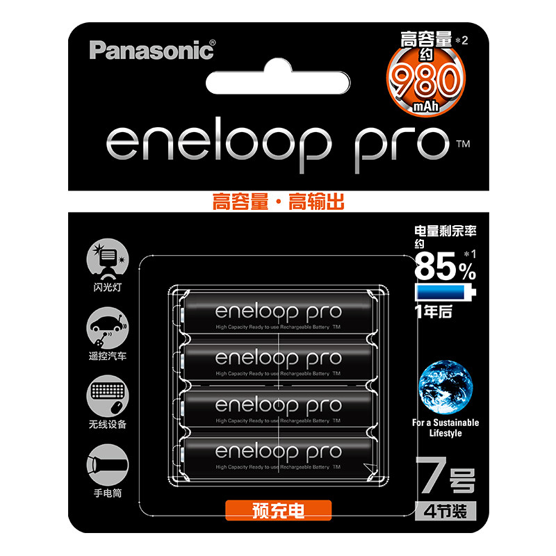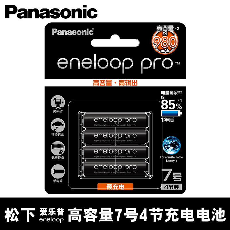 📚 松下(Panasonic )爱乐普 AAA 黑色7号4粒高容量 BK-4HCCA/4BW 三洋 eneloop pro七号可充电电池 950mAh