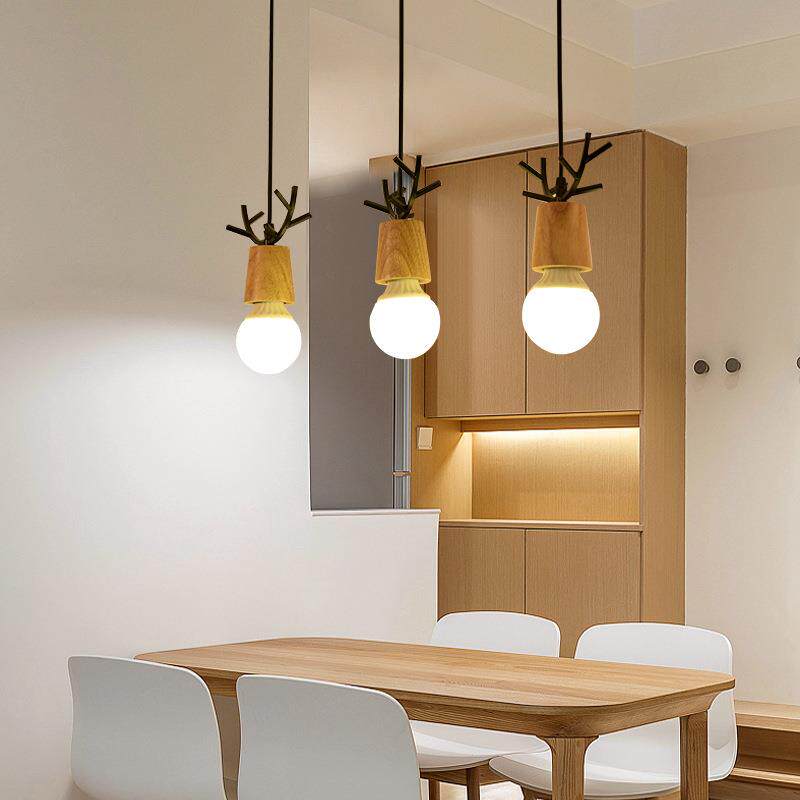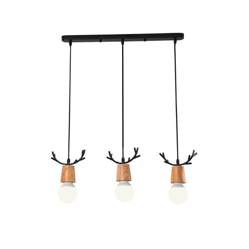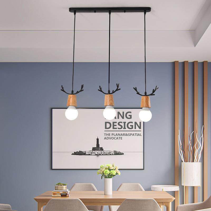 📚 卧室鹿角实木单头餐厅迷吧节台铁过道艺3头鹿角你吊灯LED节能能省