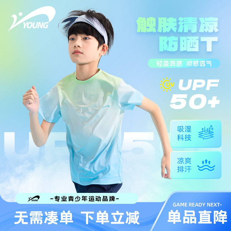 📚 贵人鸟童装速干衣儿童2026新款大童运动套装冰丝夏装男童短袖t恤