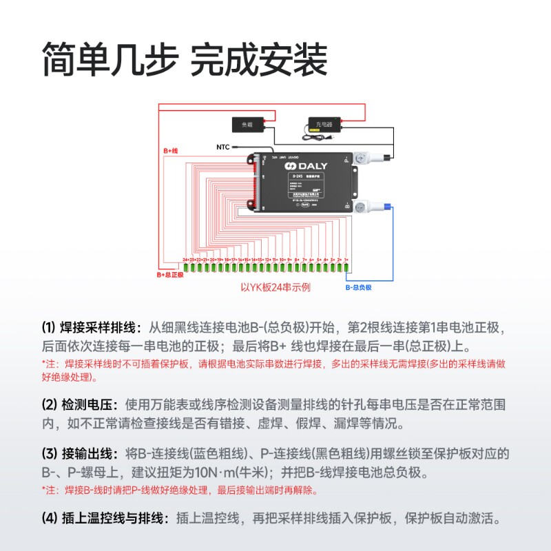 📚 达锂4-24串三元铁锂电池保护板48V蓝牙UART通讯30A-120A电动车bms