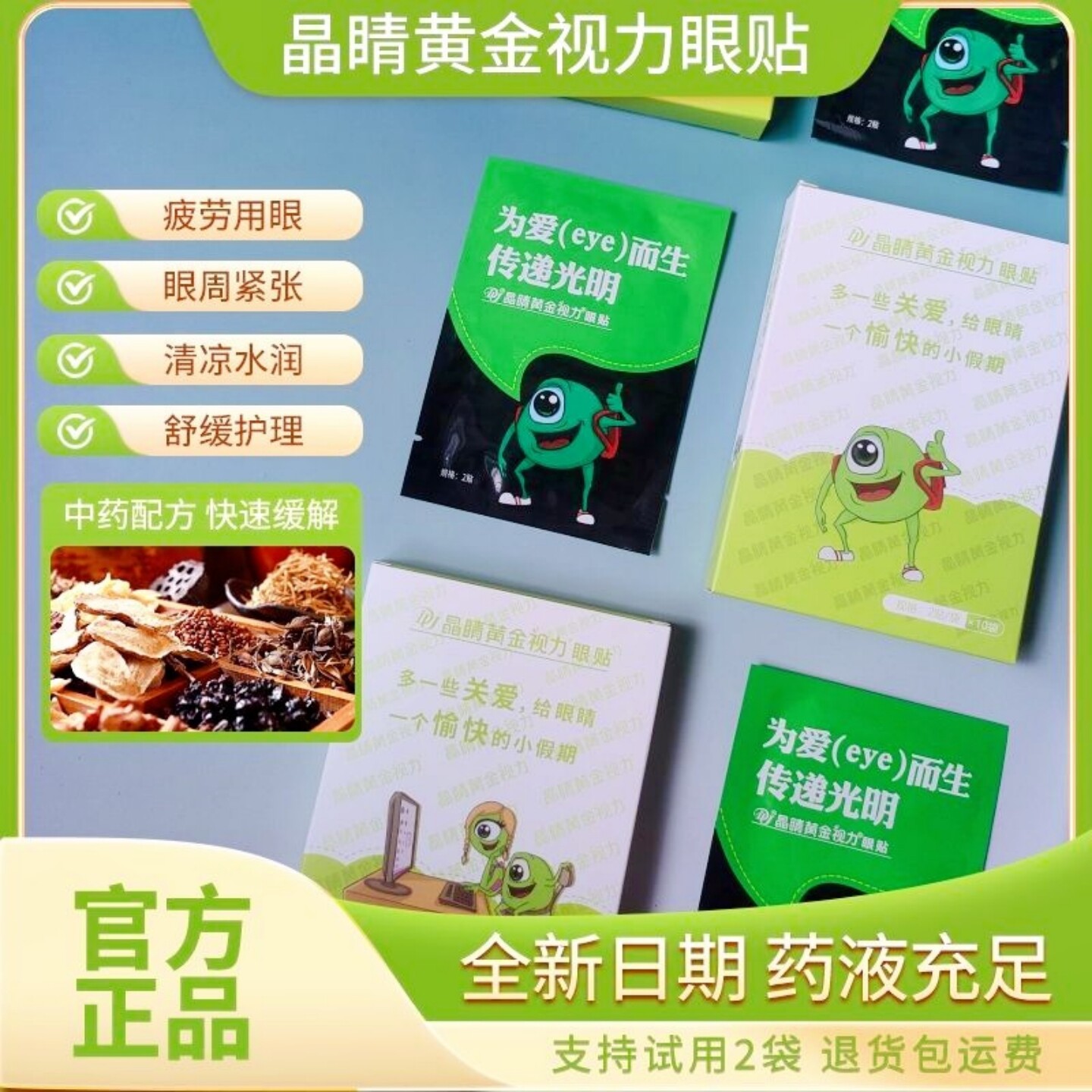 📚 晶睛黄金视力眼贴中为爱而生药晴缓解护眼疲劳eye冰敷官方旗舰店
