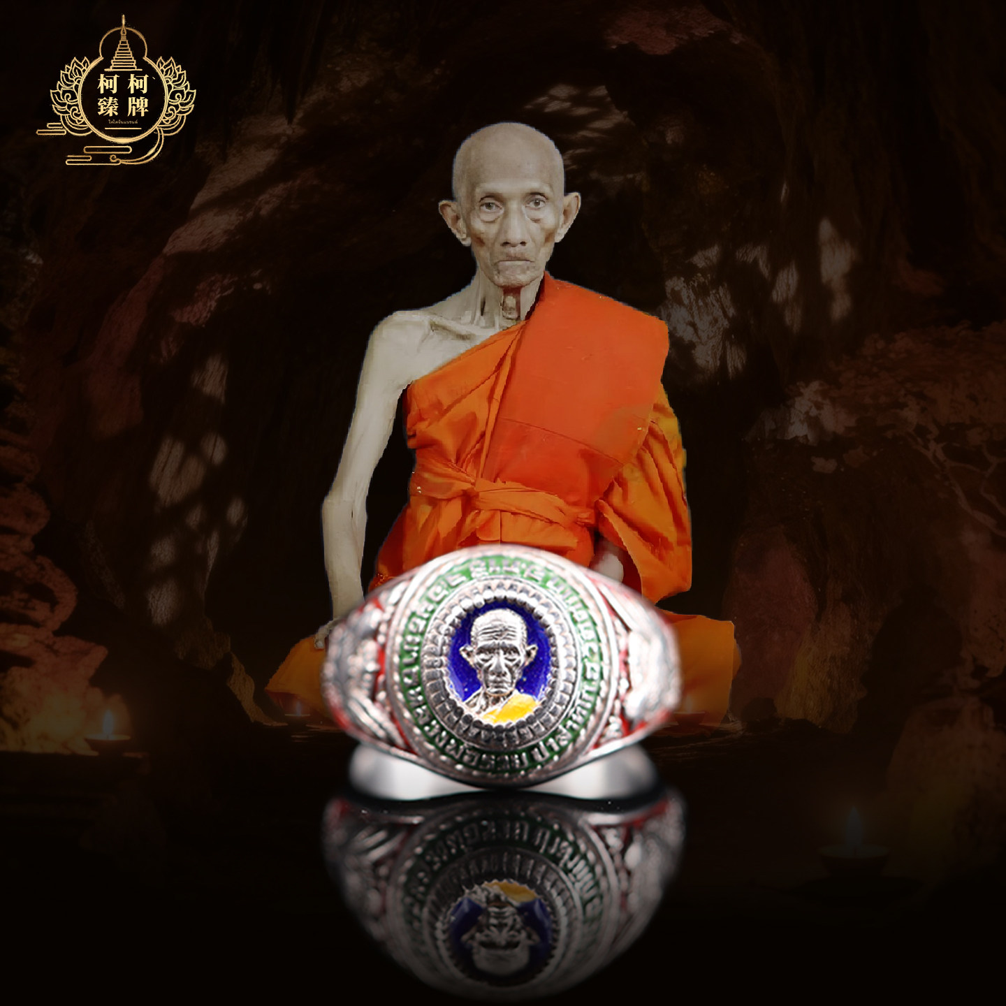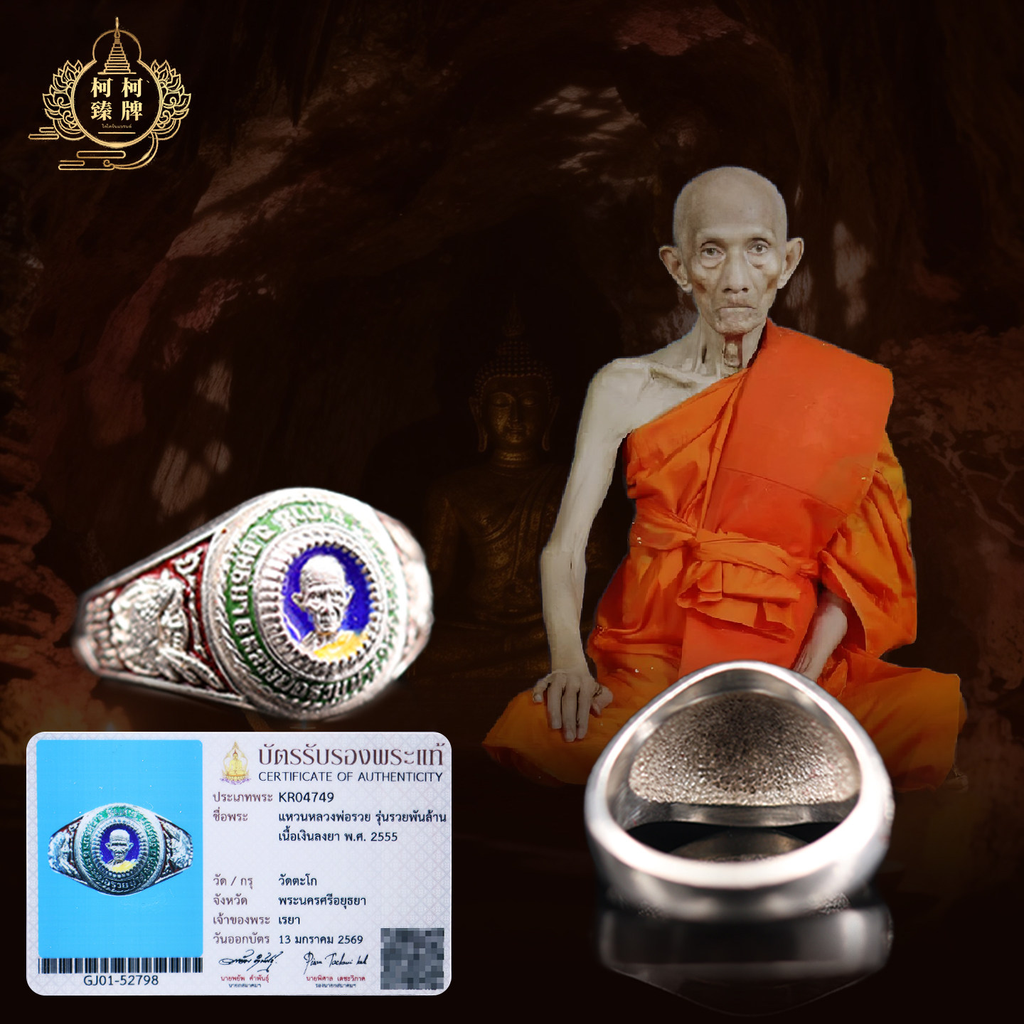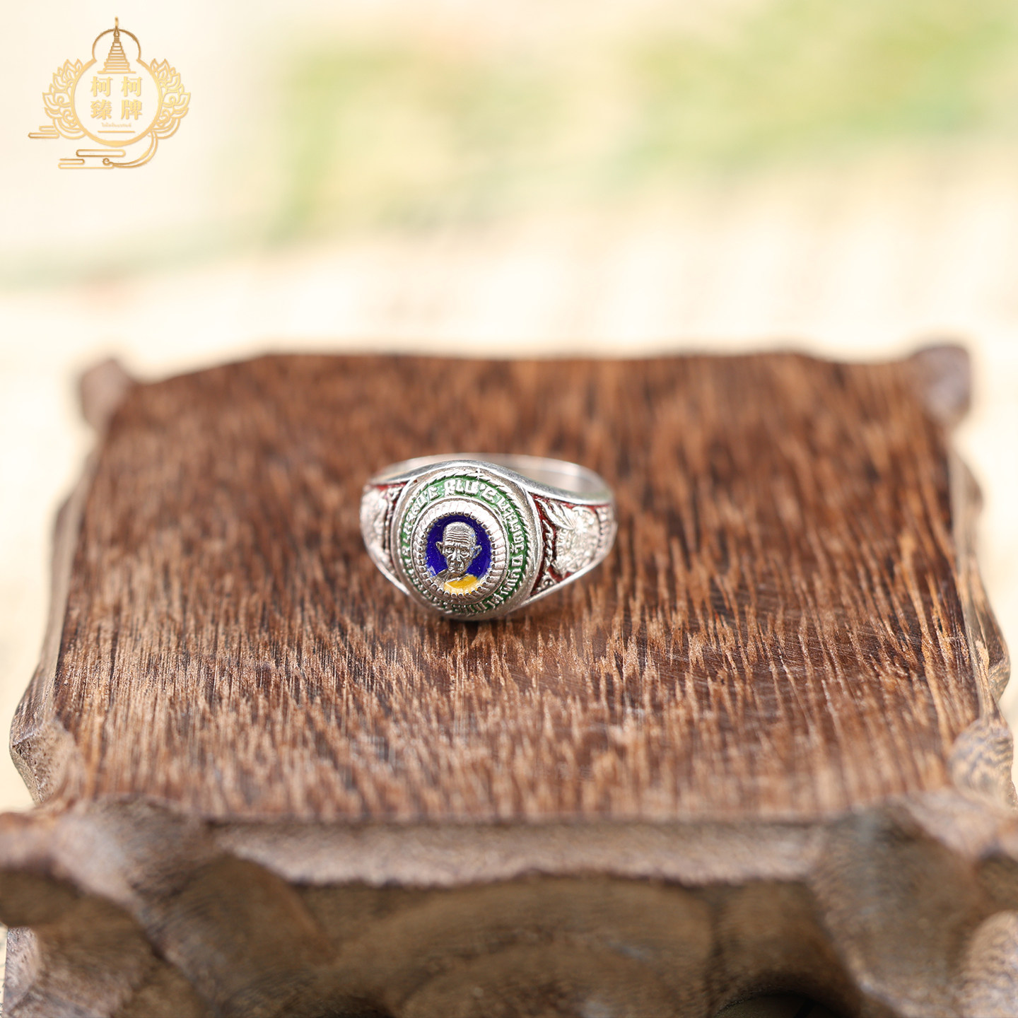 📚 泰国正品龙婆瑞生前2555年十亿自身纯银戒指带萨马空鉴定卡戒指