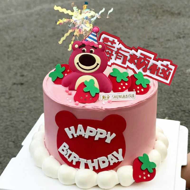 📚 草莓小熊生日快乐插卡牌插牌插件套装霉有烦恼儿童蛋糕装饰品配件