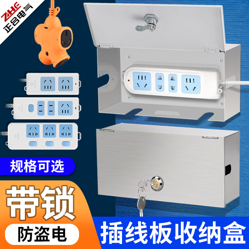 📚 插线板收纳盒排插座防水保护箱不锈钢室外电动车充电器带锁防盗盒
