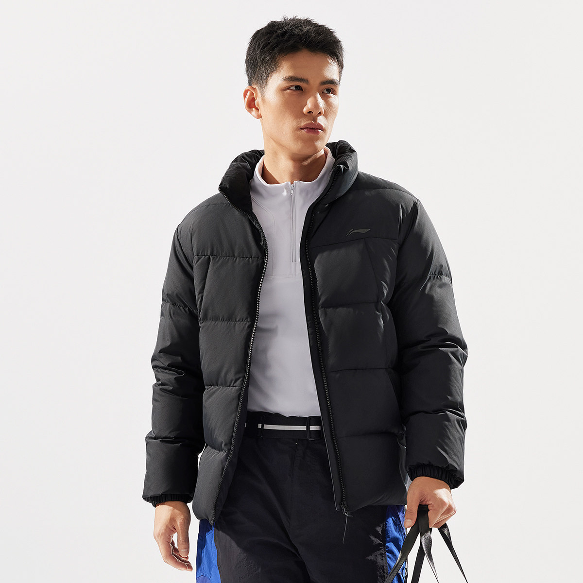 📚 李宁正品健身系列男子防泼水简约立领保暖运动短款羽绒服AYMU097