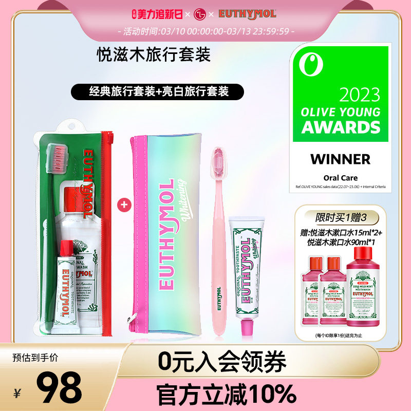 98¥ MF168 u8EdUEzEk1x¥ https://m.tb.cn/h.ieOaYAY EUTHYMOL/悦滋木英国品牌进口亮白旅行套装牙刷+牙膏清新口气 --------------------- 【原售价】109元 【现售价】65元。