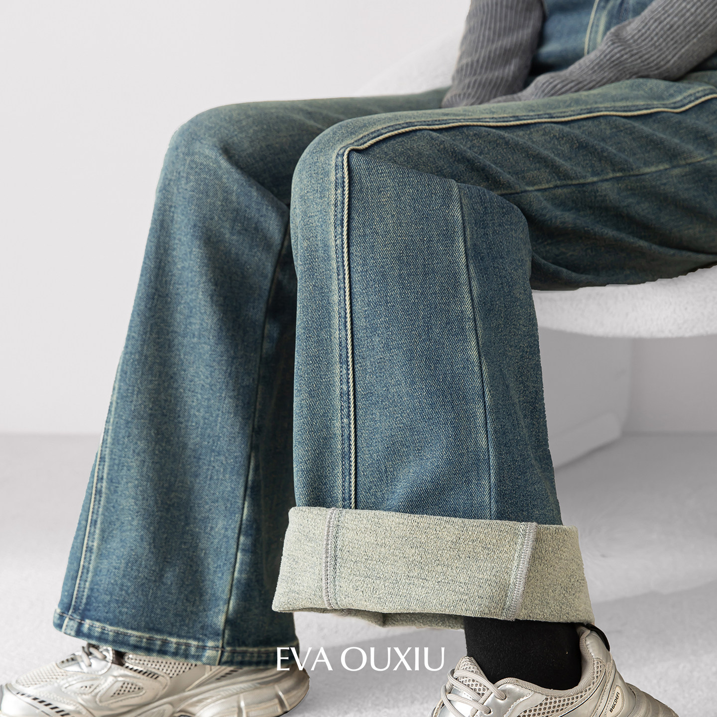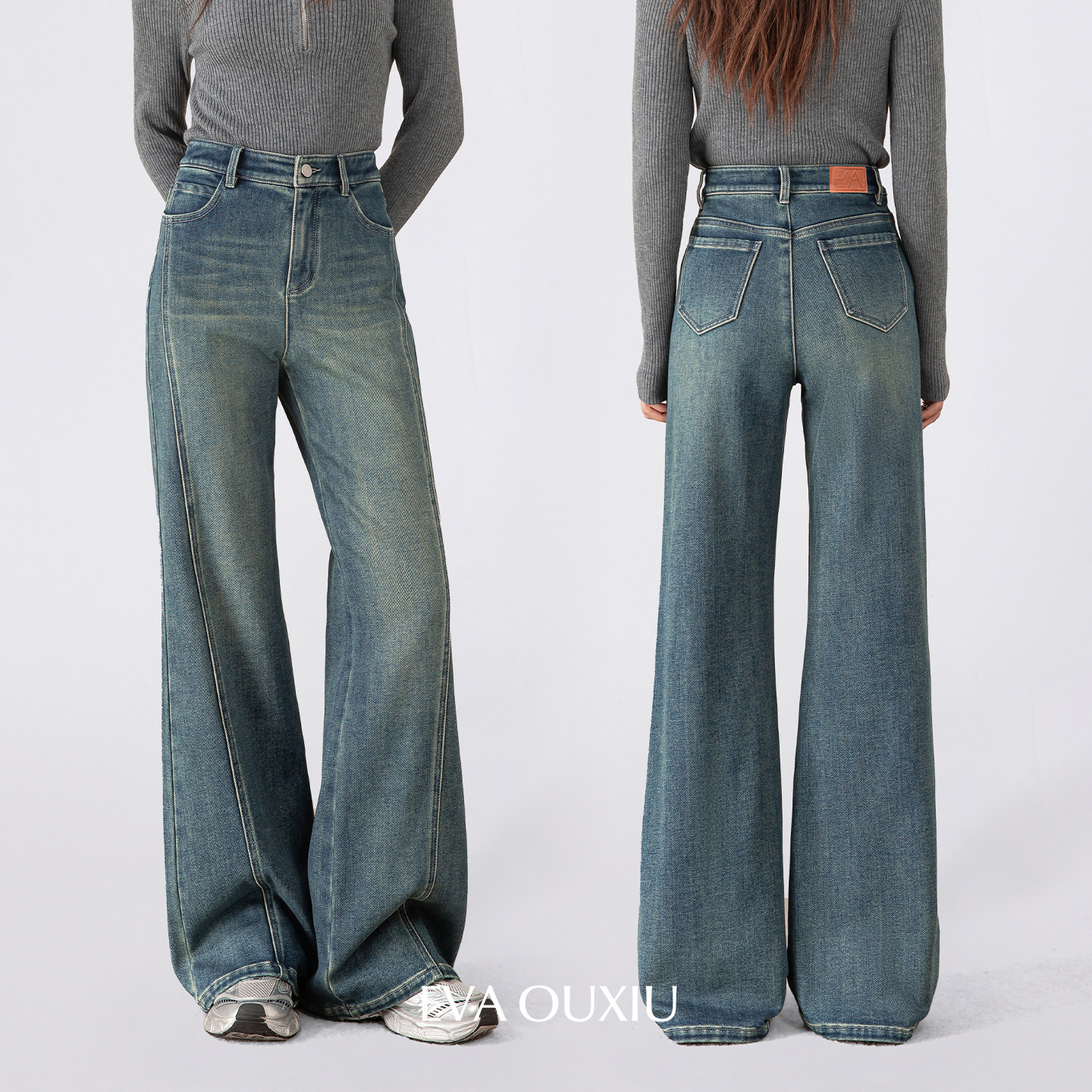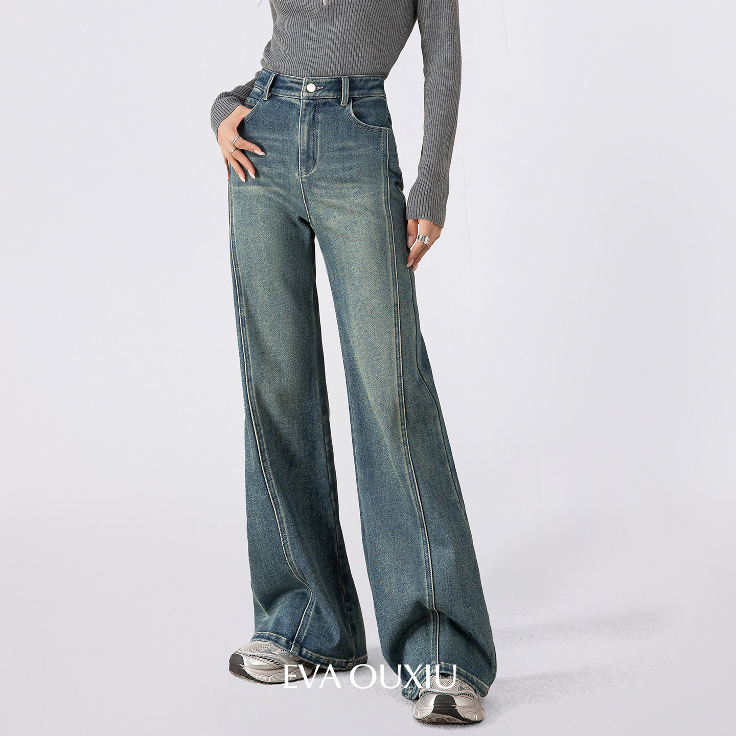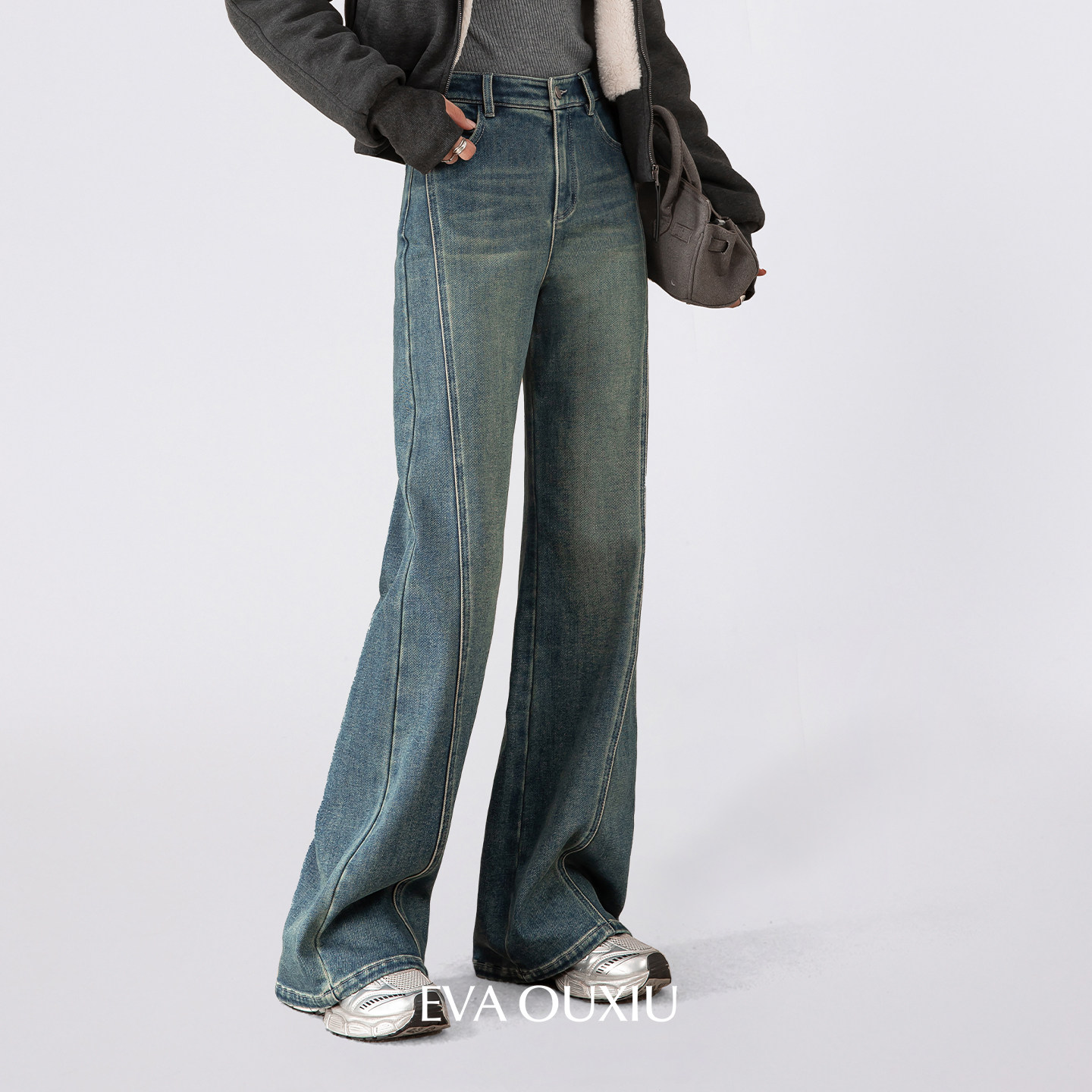 📚 EVAOUXIU【新品】梨形显瘦高腰直筒加绒微喇牛仔裤女新款秋冬长裤