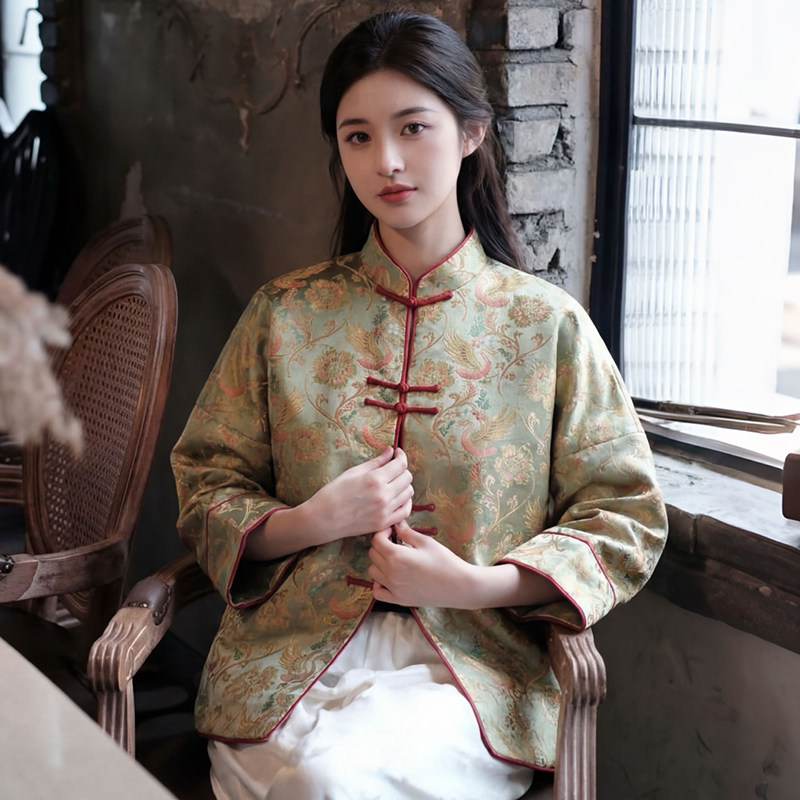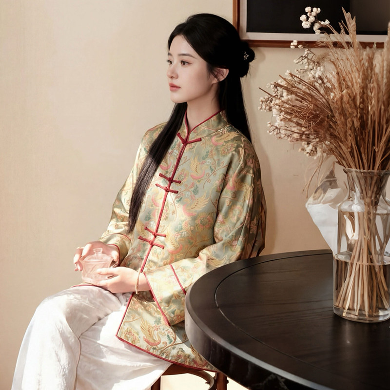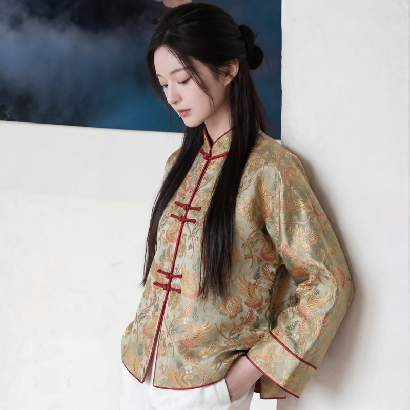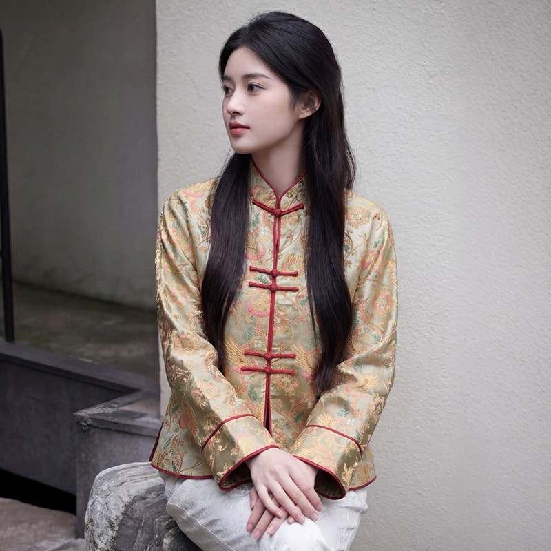 📚 "天鹅湖" 新中式100真丝织金宋锦短外套女早春季2026新款国风上衣
