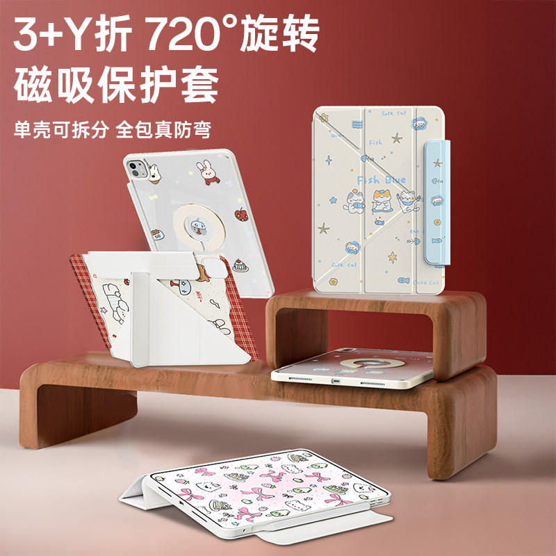 📚 适用iPadPro保护套2025新款ipadair7/6苹果ipad11保护壳10代mini7平板air5磁吸拆分4笔槽Y折搭扣12.9防弯旋转