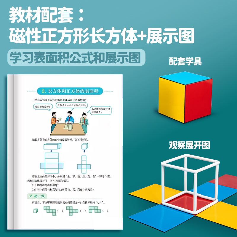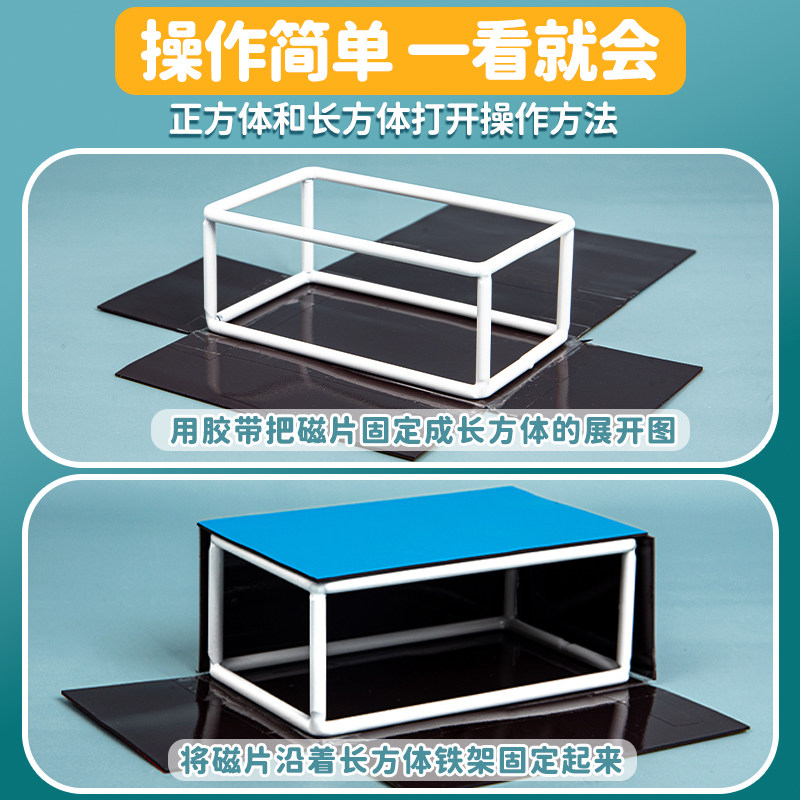 📚 磁性正方体和长方体数学教具小学五年级下册立方体张开折叠纸棱长表面积的认识六面正方体磁吸方位观察展开图