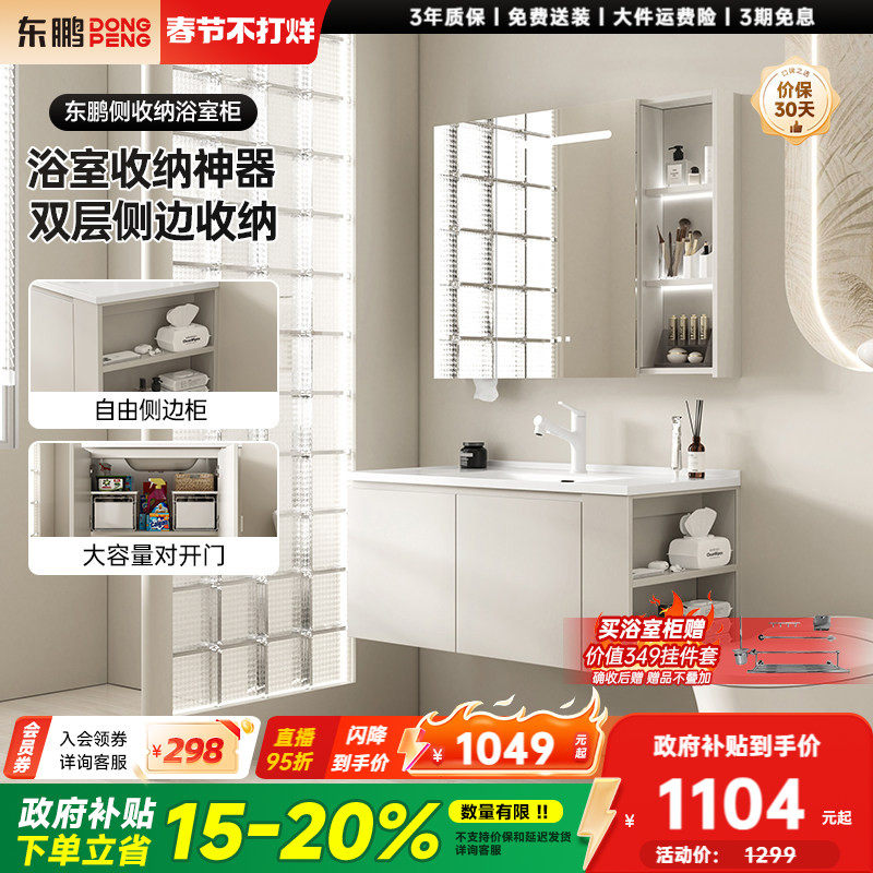 📚 东鹏侧开放浴室柜组合陶瓷一体盆洗手脸盆柜卫生间洗漱台1964