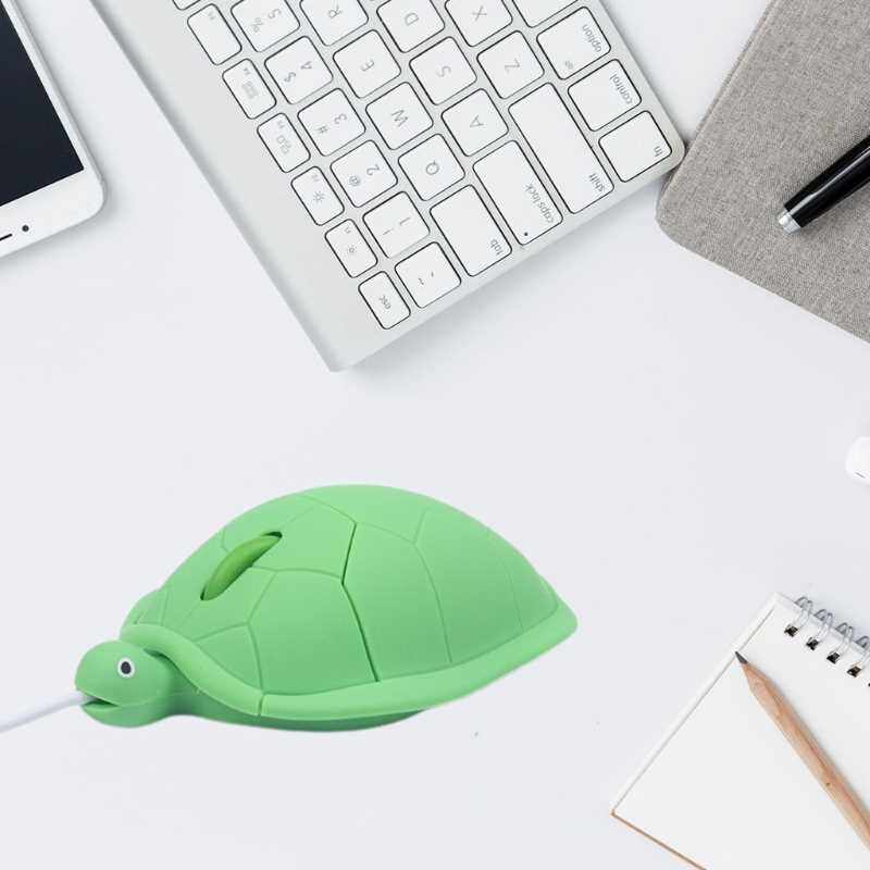 📚 K1KF Green Turtle Shaped Wired Mice Portable Corded Optical