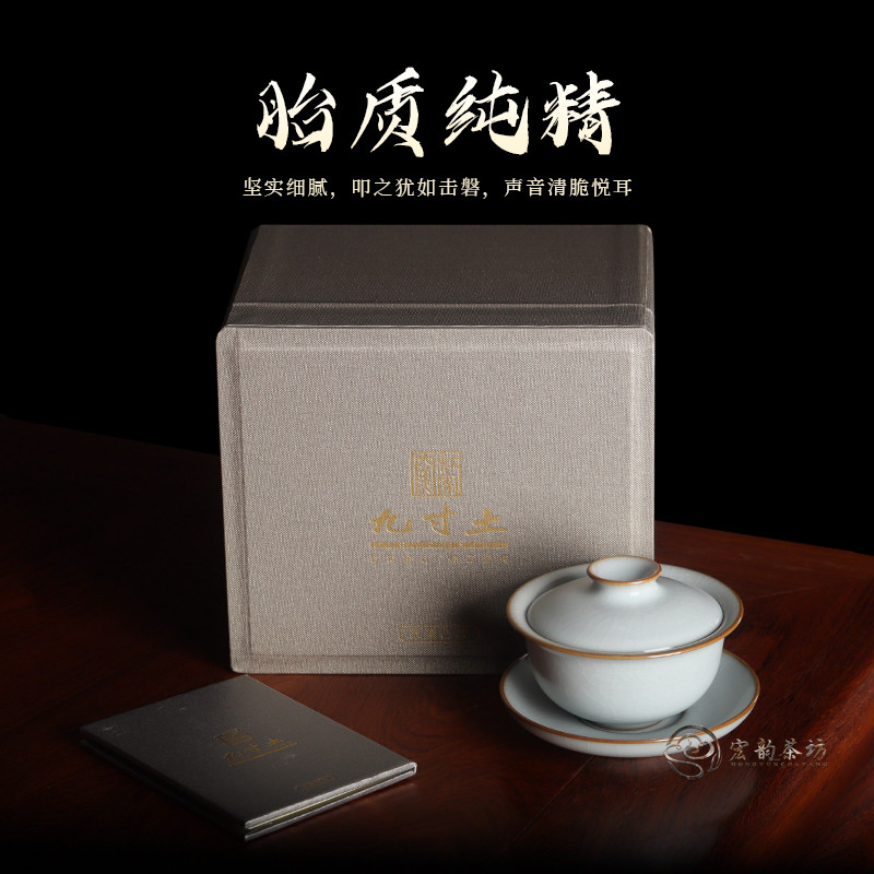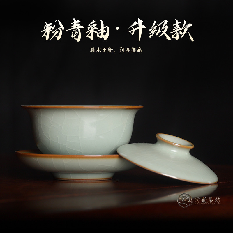 📚 限量2024套九寸土汝窑三才盖碗全手工泡茶器天青粉青汝瓷陶瓷茶具