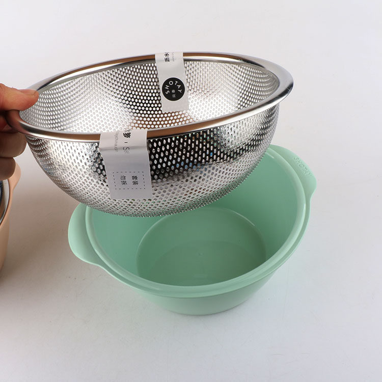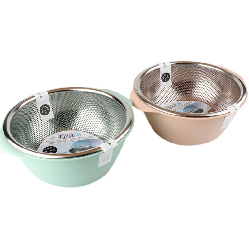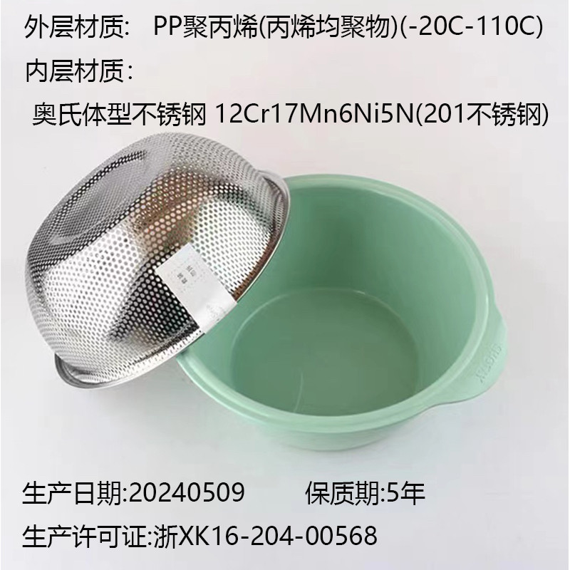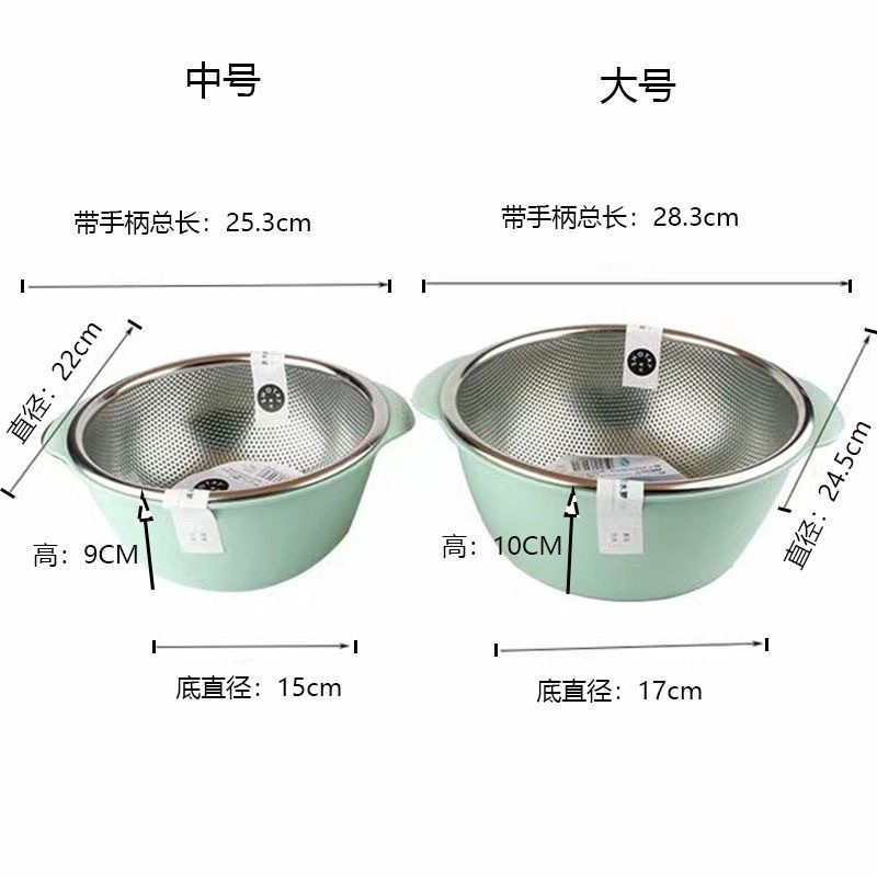 📚 顺美不锈钢双层沥水篮蔬果盆中式家用洗水果蔬菜盆淘米筛沥水接水