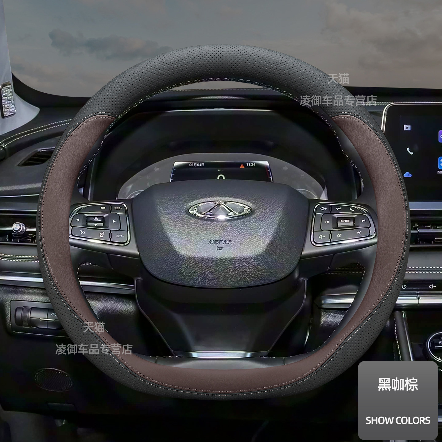 📚 2026款适用于第五代瑞虎8虎款 豹款鲲鹏方向盘套汽车内饰纳帕皮