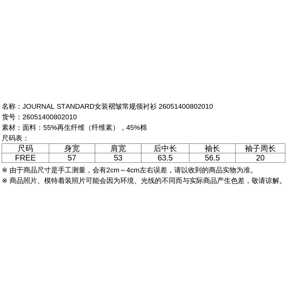 📚 1h可退 日本直邮JOURNAL STANDARD女装褶皱常规领衬衫 2605140080