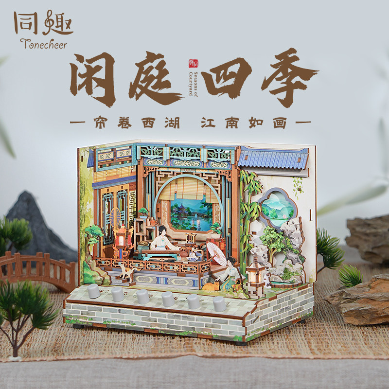📚 同趣八音盒书立情景小屋收纳屋幻彩灯万年历手工diy积木拼图礼物
