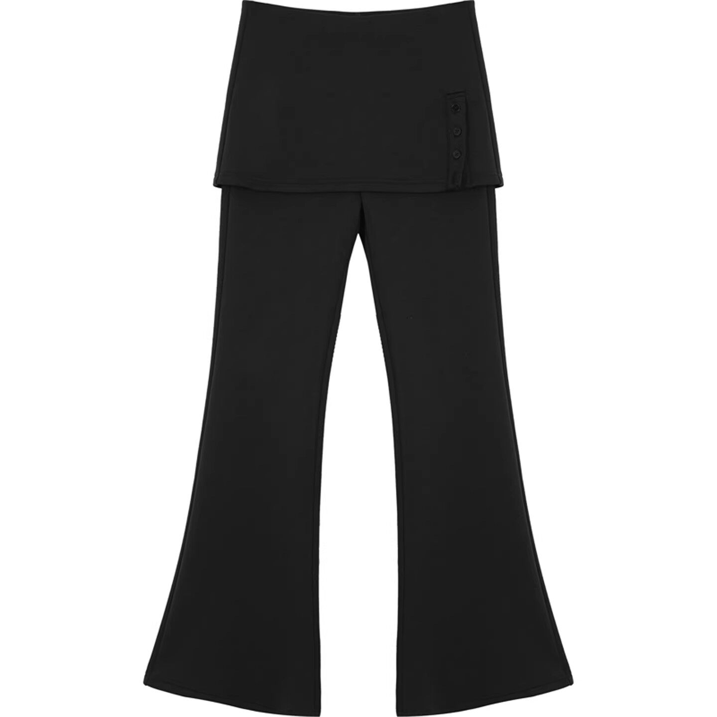 📚 咖色加绒假两件纽扣屁帘微喇裤女秋冬慵懒风显瘦瑜伽运动喇叭卫裤