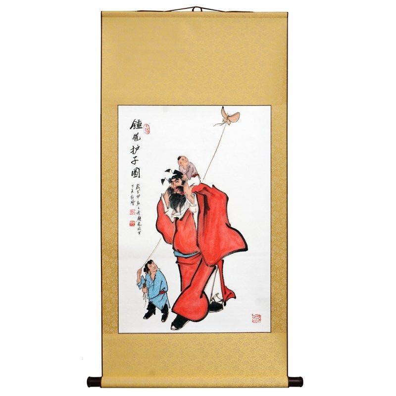 📚 朱砂手绘钟馗护子图挂画天师钟馗画像国画玄关卧室招财门神卷轴画