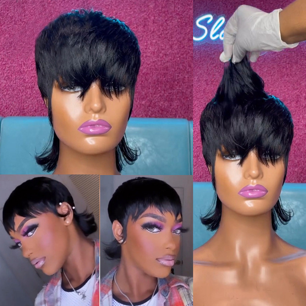 📚 Full Machine Made Wig With Bangs Human Hair Wigs 真人发发套