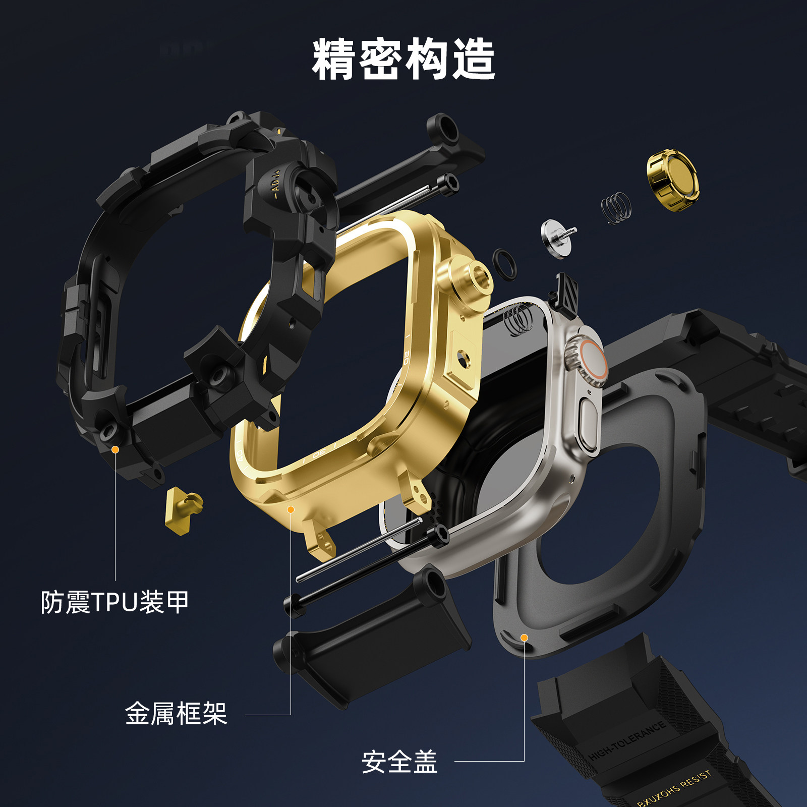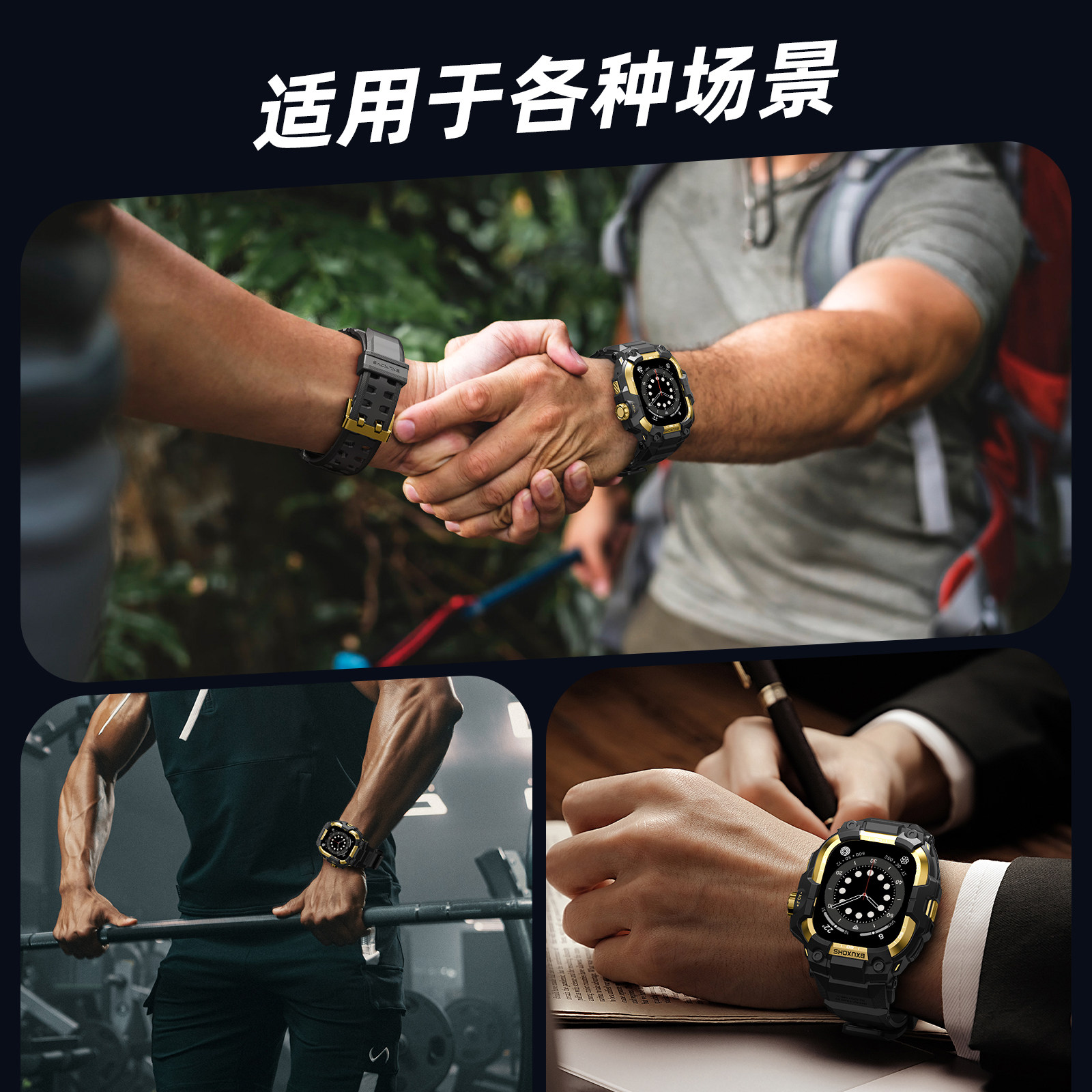 📚 适用AppleWatch Ultra3/2/1代金属改装壳苹果手表iwatch10高性能硅胶表带S11一体氟橡胶运动表带45/46/49mm