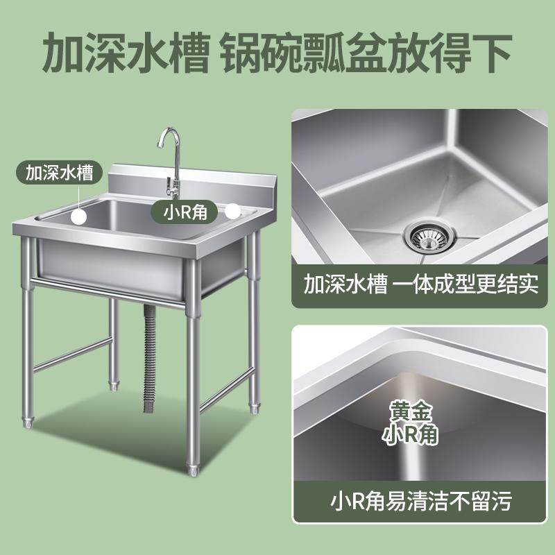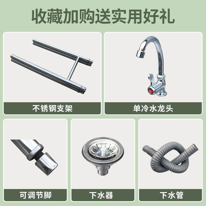 📚 商用单槽不锈钢水池单眼带支架水龙头厨房洗手槽洗菜盆洗碗池加厚