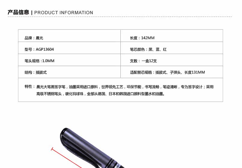 📚 晨光AGP13604笔芯7007中性笔1.0mm大笔画签字笔大容量AGR67017