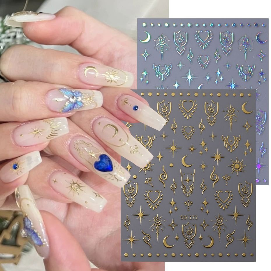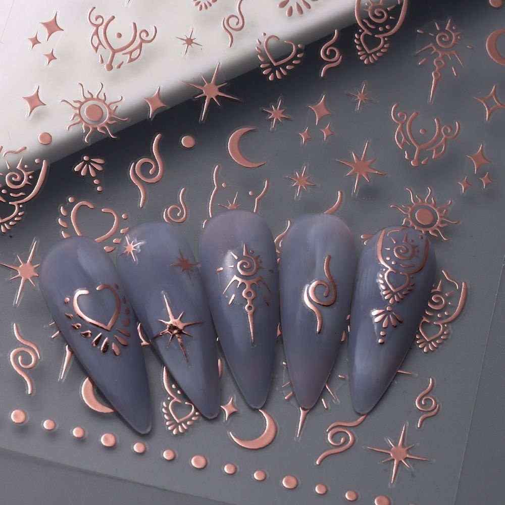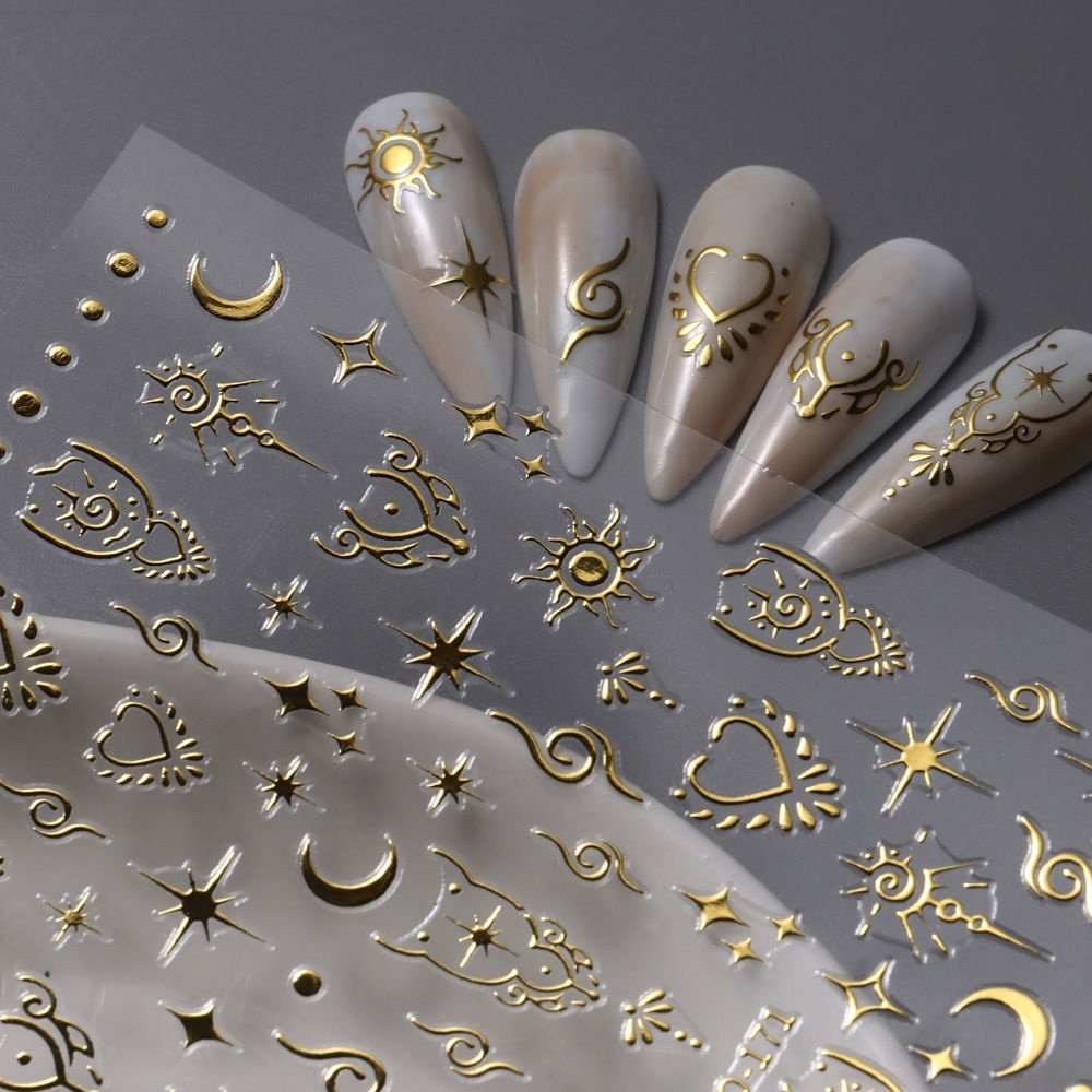 💥2023烫金美甲新宠!巴洛克风3D星星月亮太阳贴纸,券后仅1.8元💖