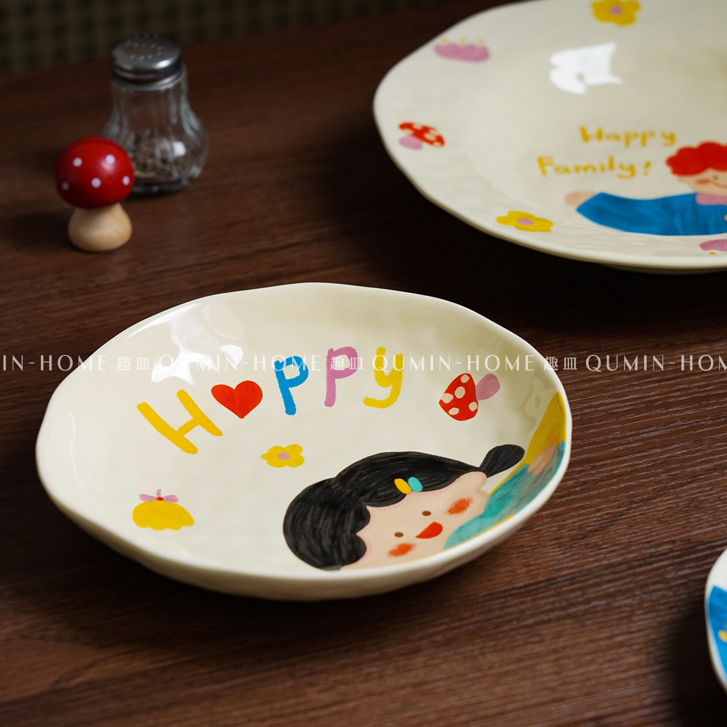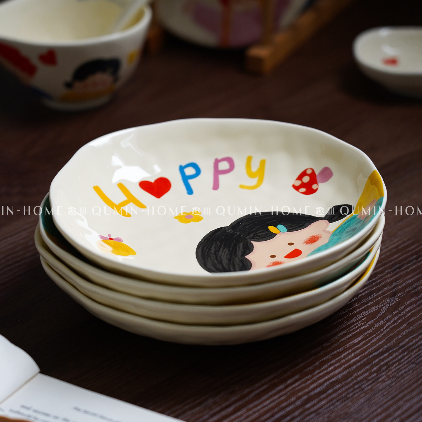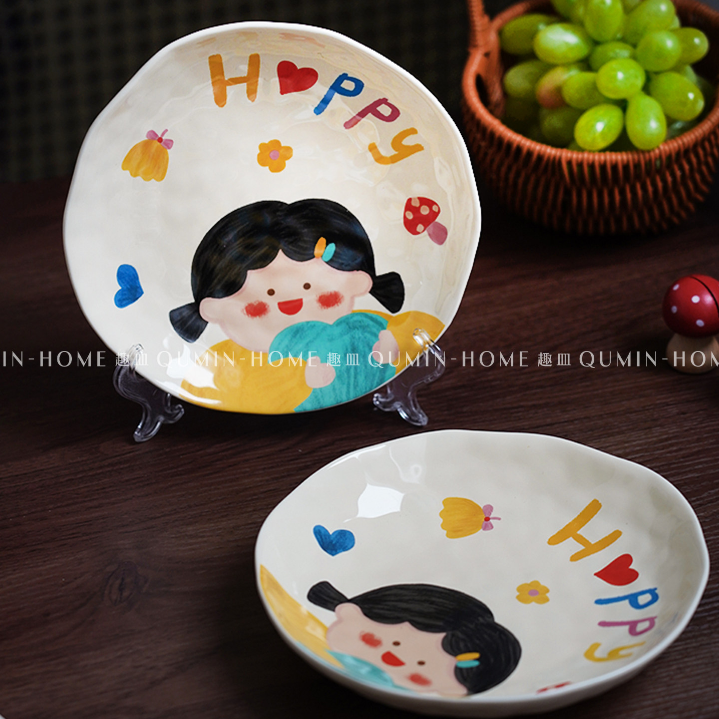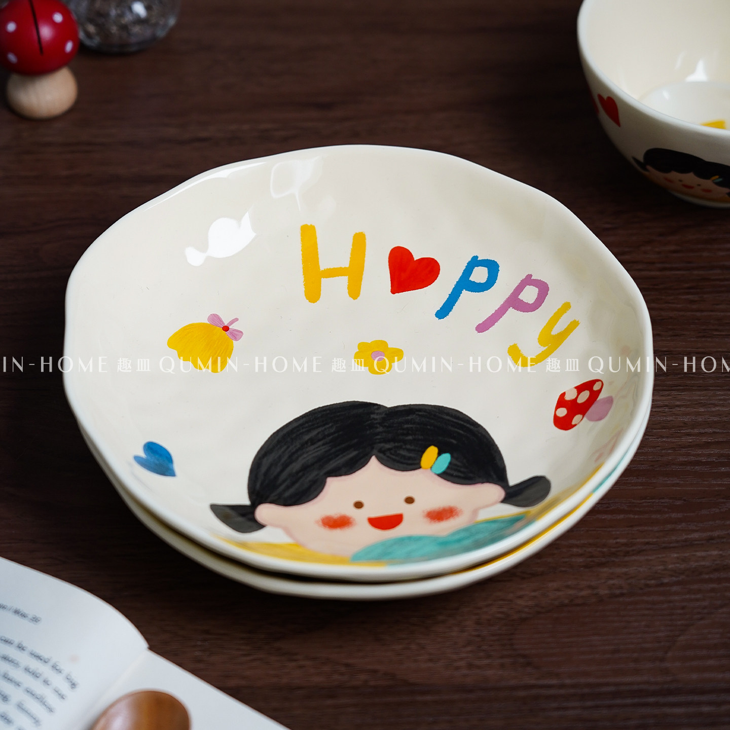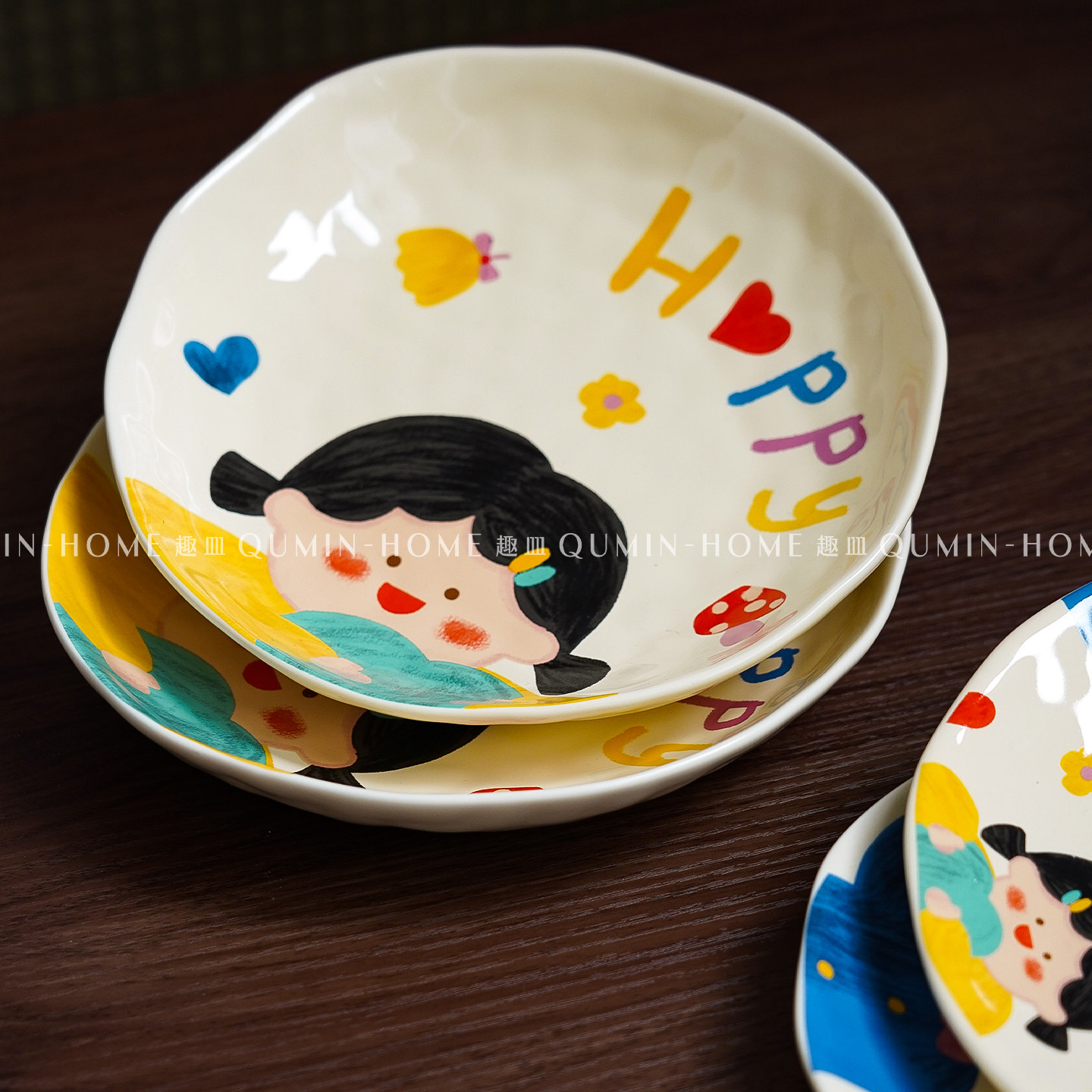 📚 趣皿卡通陶瓷盘子菜盘家用餐具儿童餐盘可爱早餐盘西餐盘深盘套装