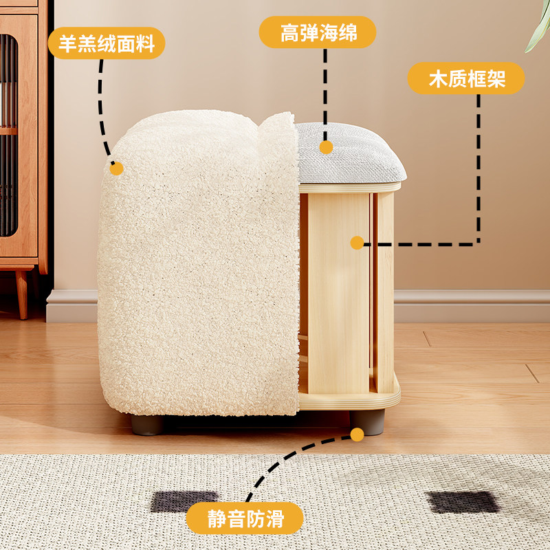 📚 小凳子家用矮凳客厅沙发凳小板凳脚凳门口换鞋凳软坐垫羊羔绒椅子