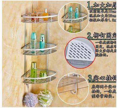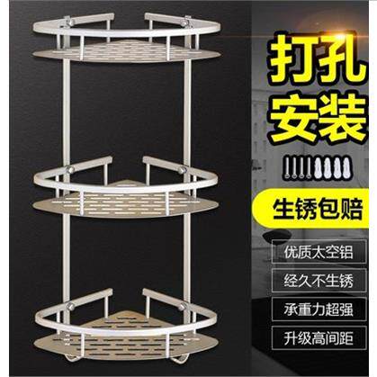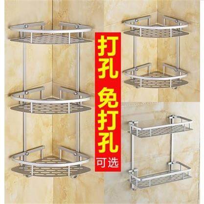 📚 浴室置物架卫生间打孔壁挂转角架子免打孔太空铝两用收纳三角架