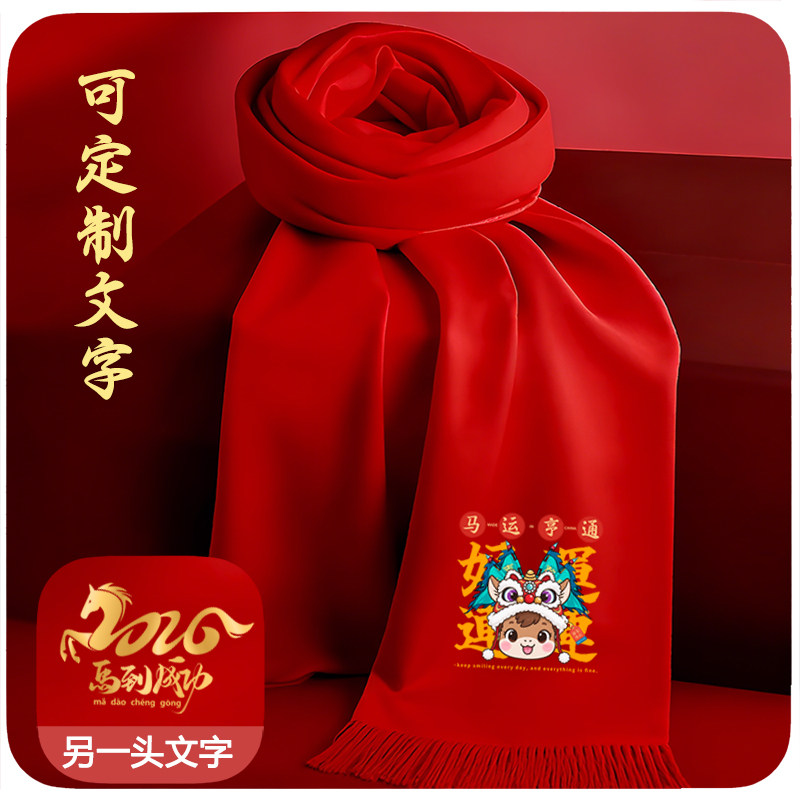 🔥惊艳!中国红围巾定制印字logo刺绣2026马年高考同学聚会年会围巾,券后价仅19!💥