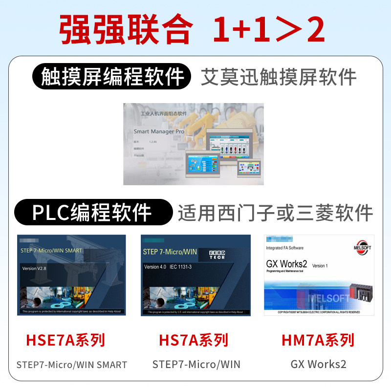 📚 艾莫迅触摸屏plc一体机工业7寸工控适用三菱西门子200Smart可编程
