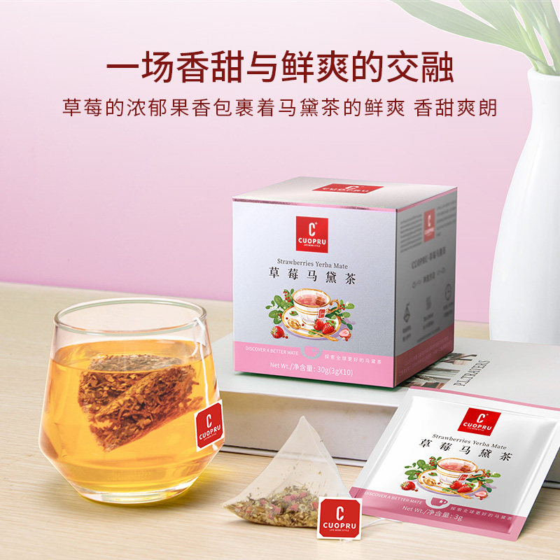 📚 配吸管Cuopru库普草莓马黛茶茶包阿根廷进口茶叶草莓干冷泡茶饮料