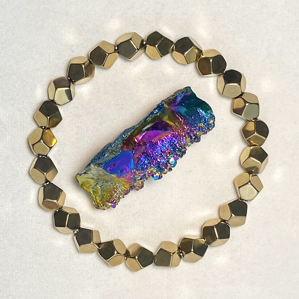 📚 temu希音tk跨境爆款手链切面黄铜矿手串欧美热卖切面弹力几何造型