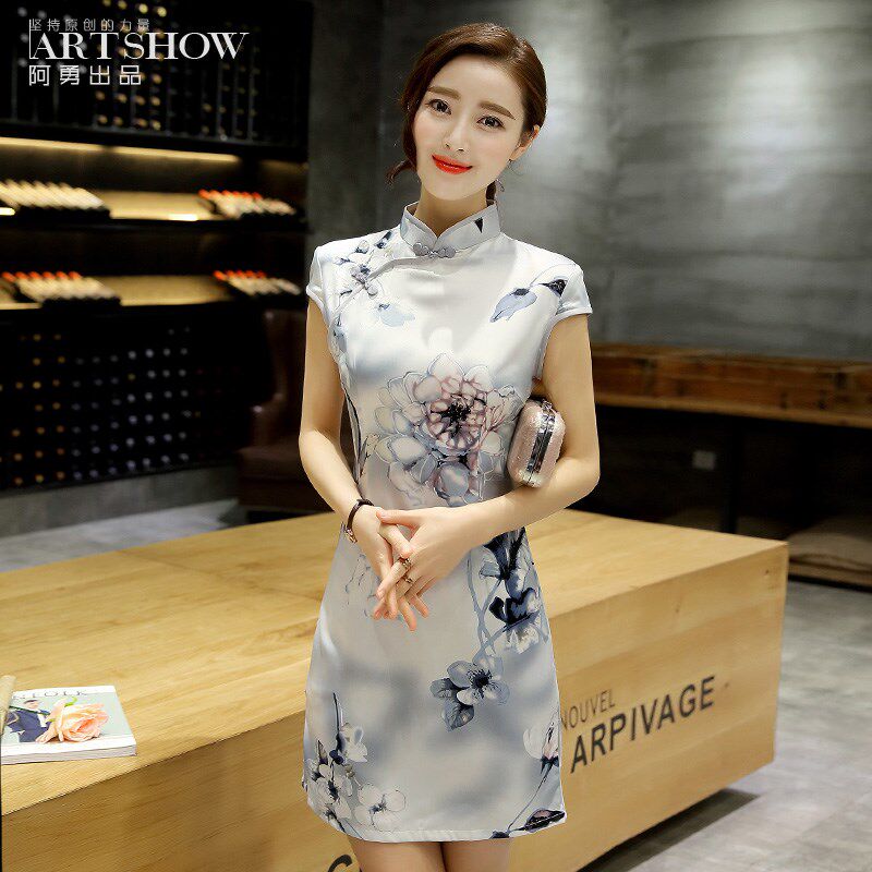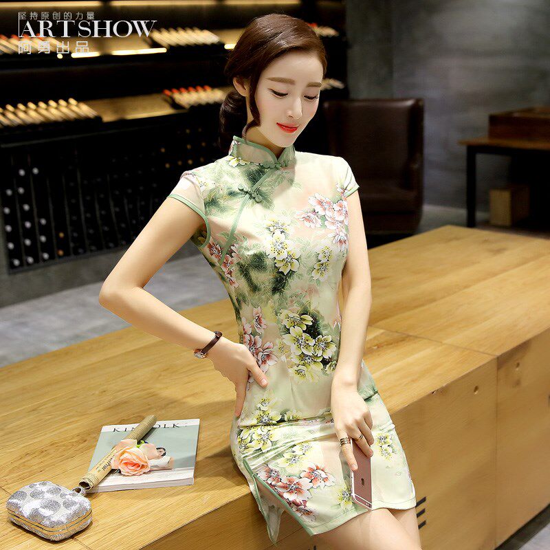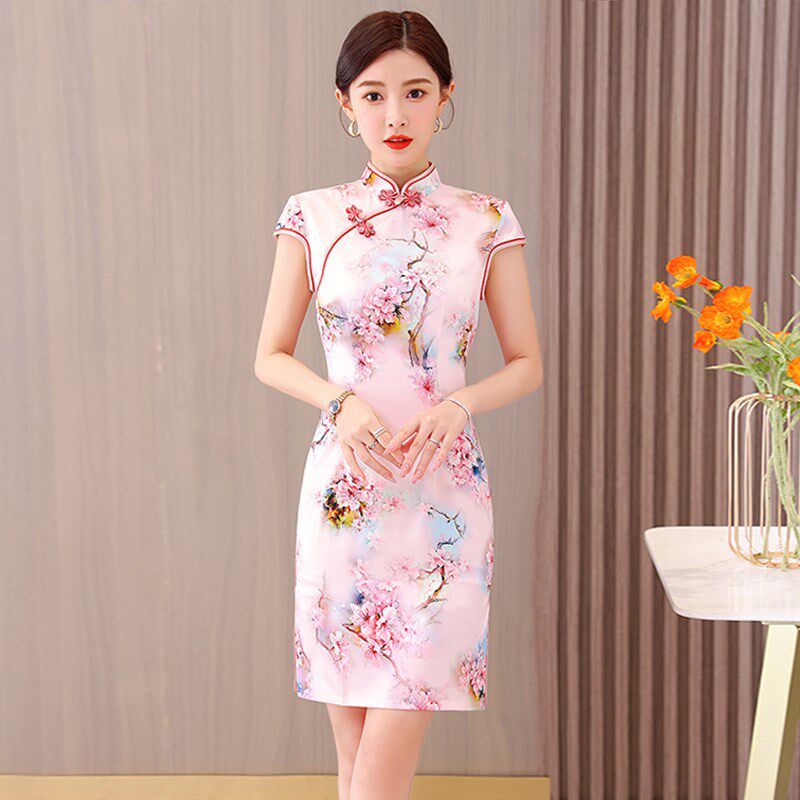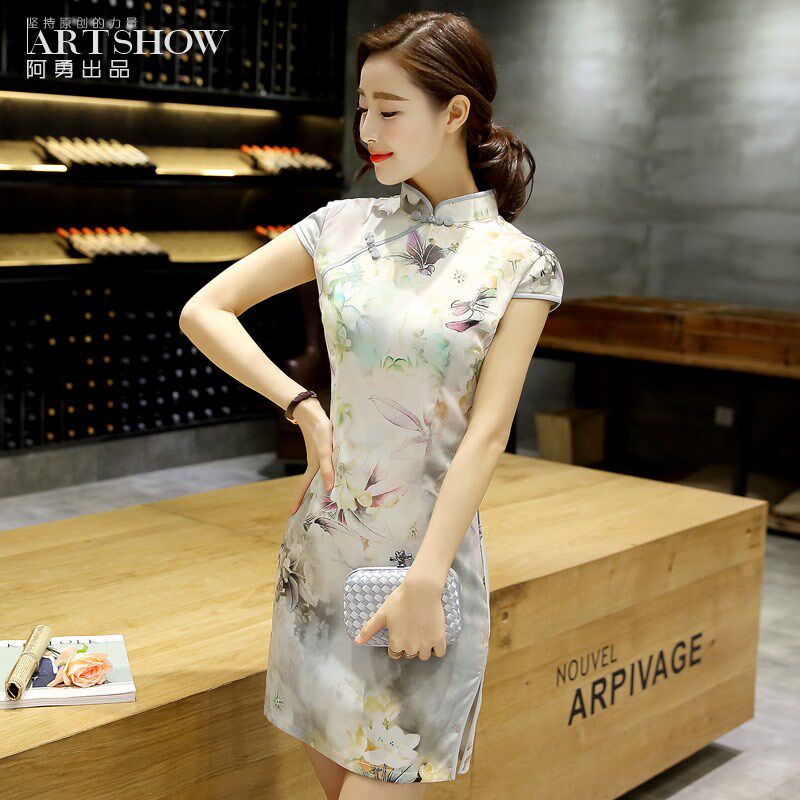 📚 真丝改良版旗袍连衣裙夏季短款时尚修身年轻款少女中长款优雅气质