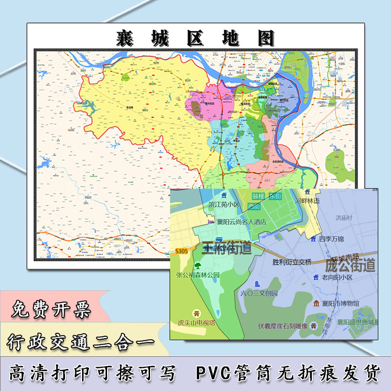 📚 襄城区地图1.1m现货防水高清贴图湖北省襄阳市行政交通区域划分