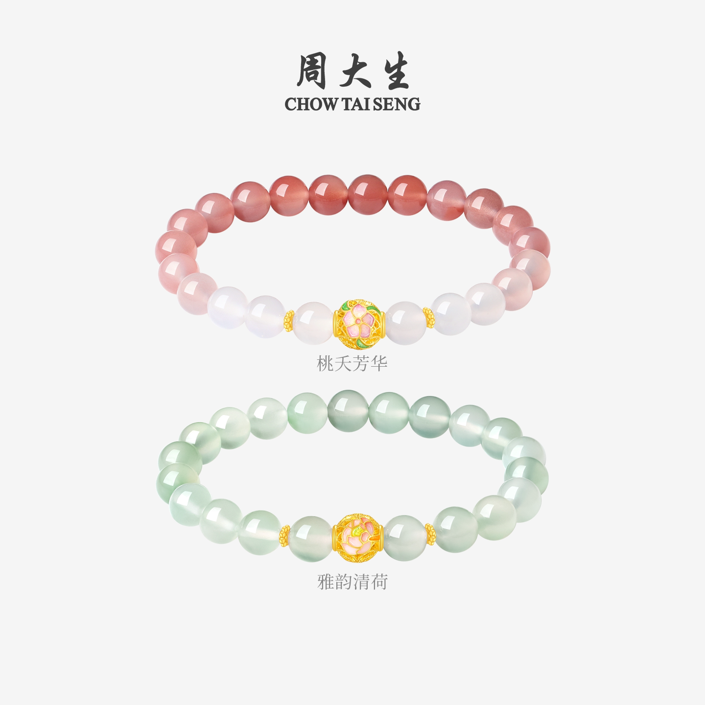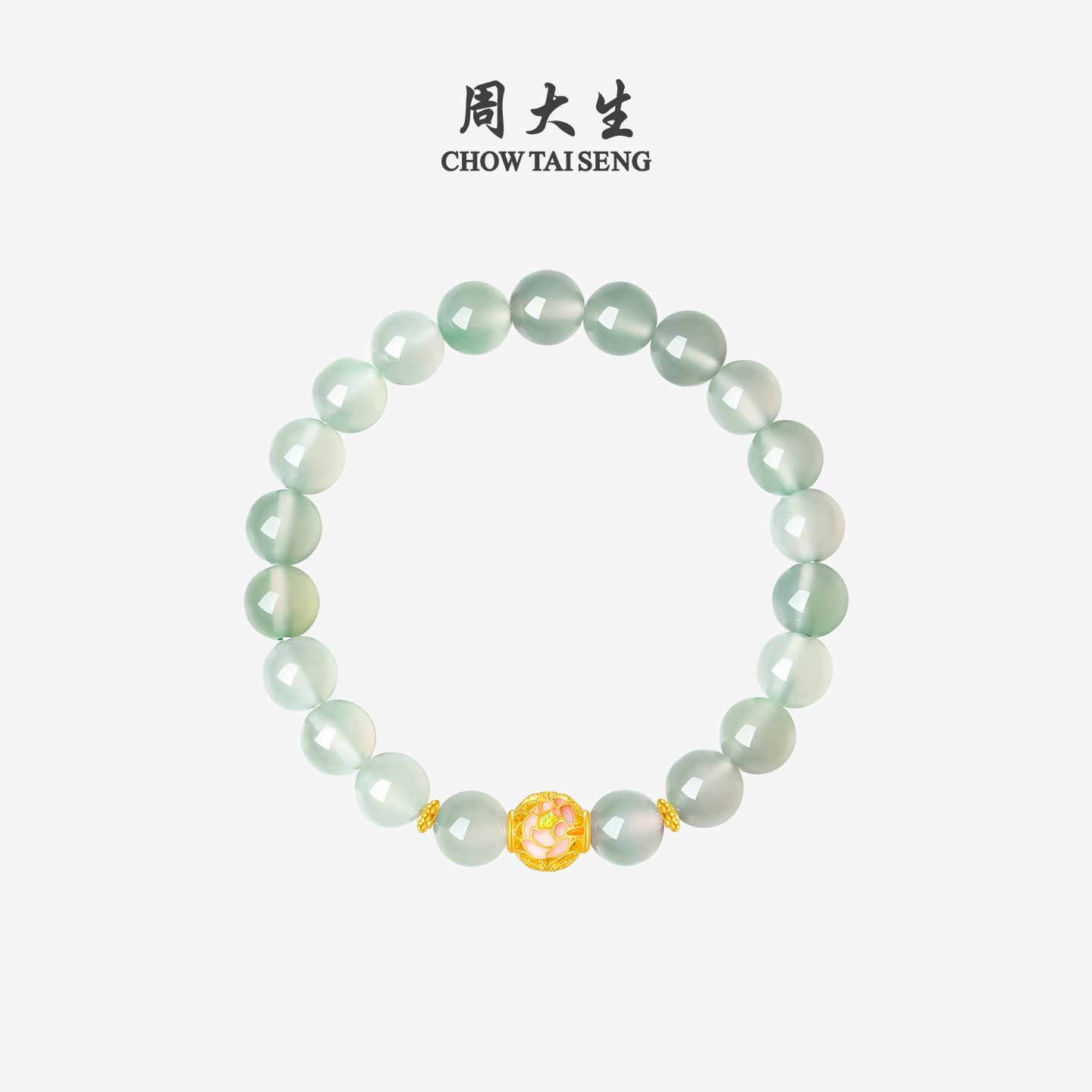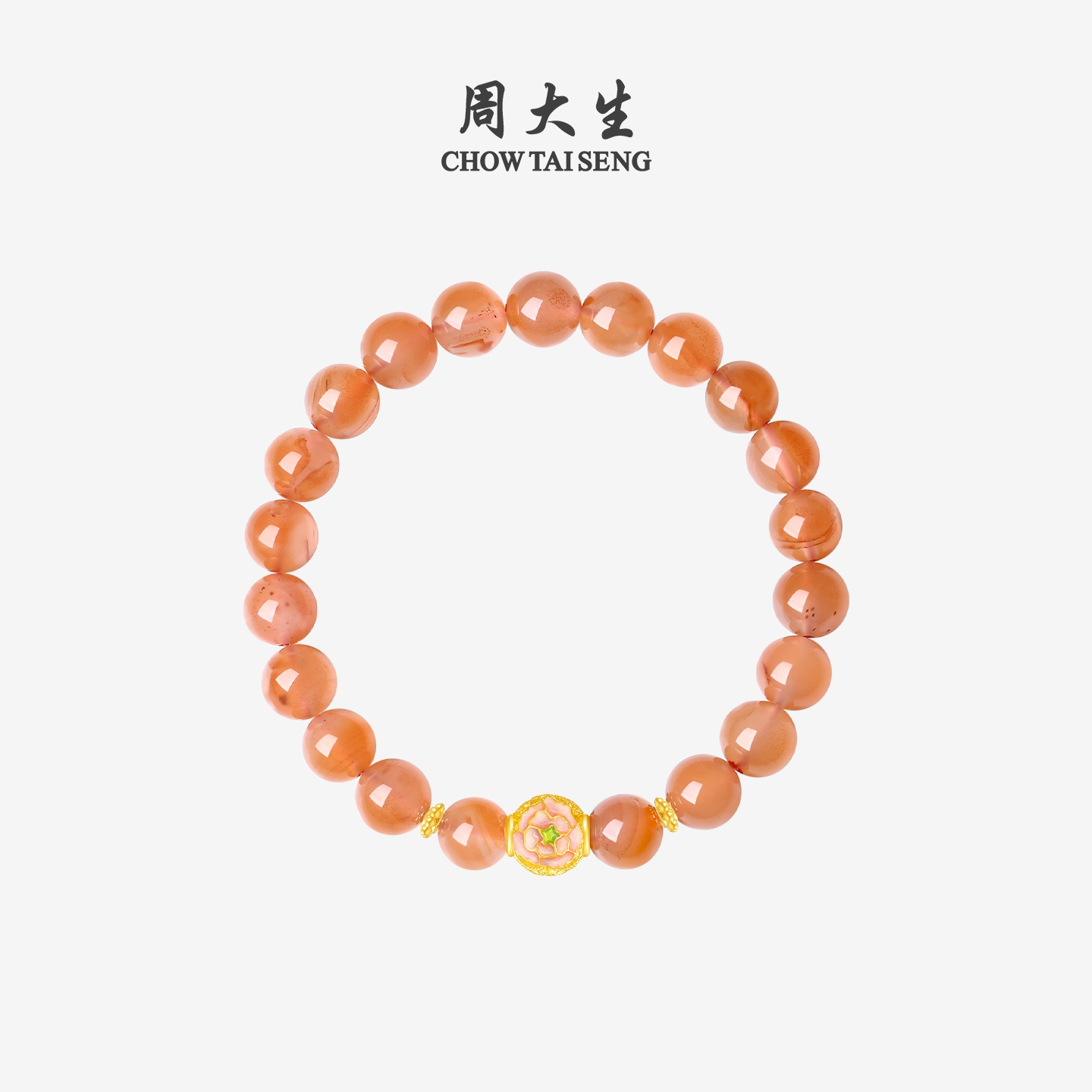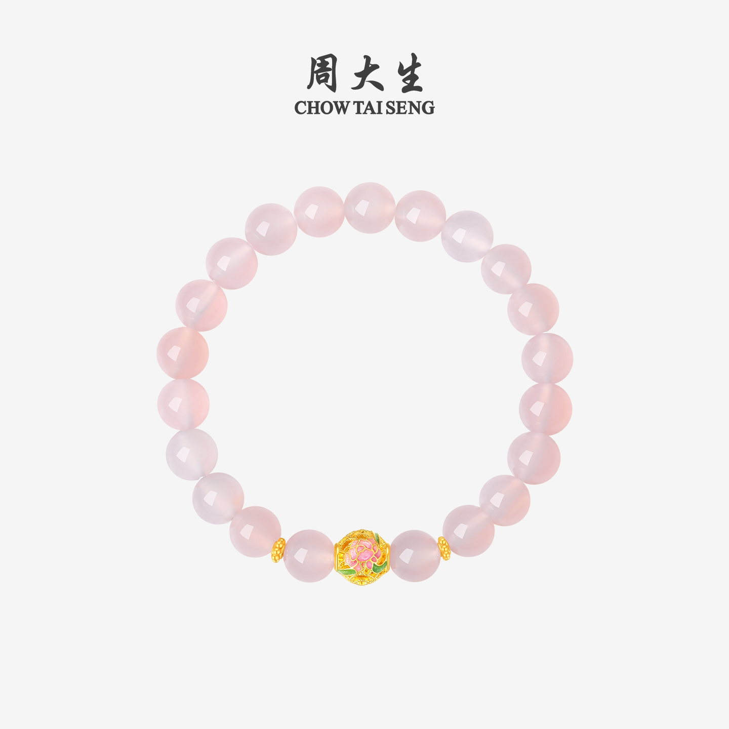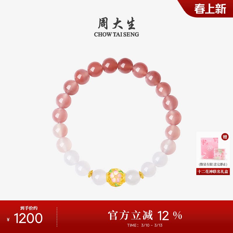 📚 周大生黄金镶玉手串女十二花神玉髓桃花牡丹手链送女友生日礼物