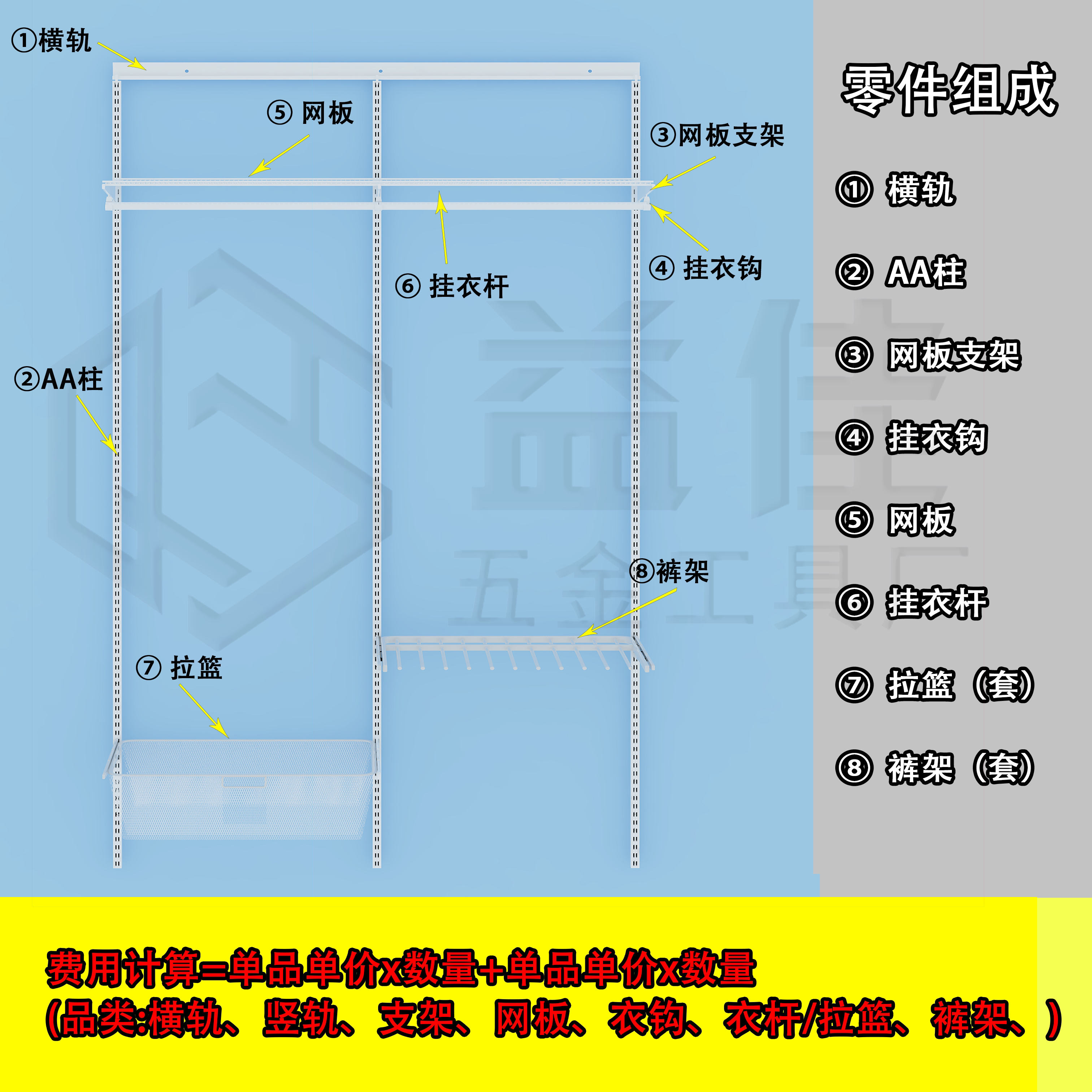 📚 AA柱开放式金属衣柜 白色置物网格架组装衣柜挂衣托臂支架配件勾