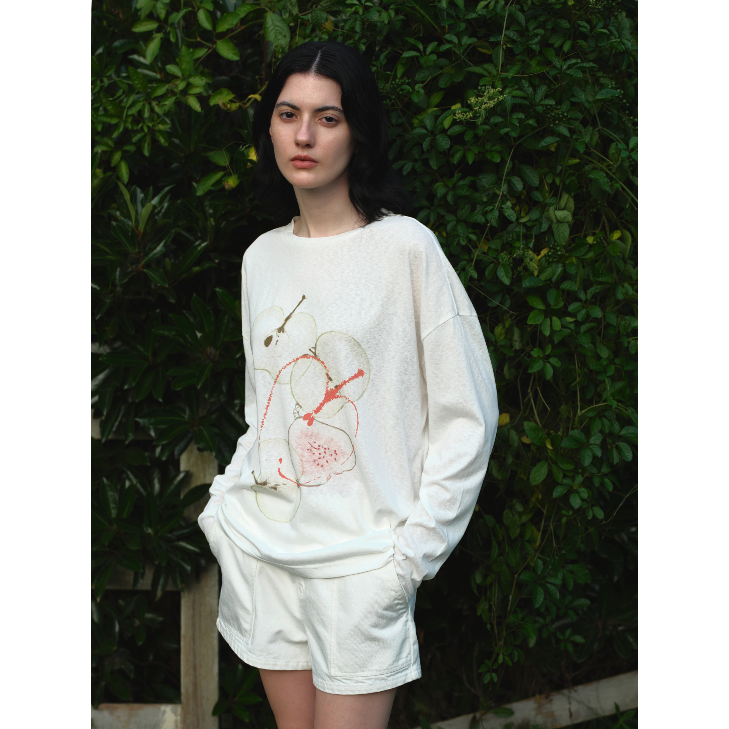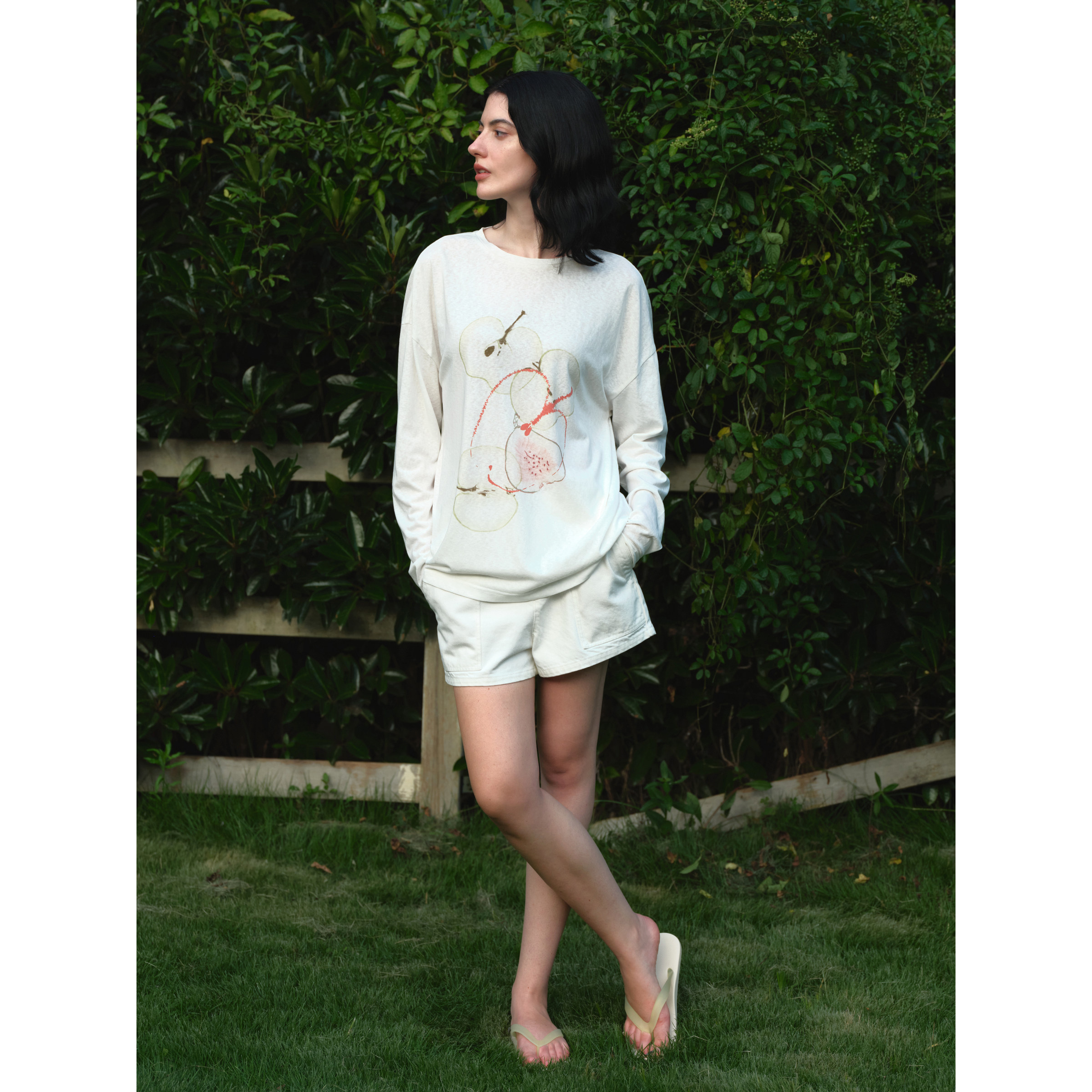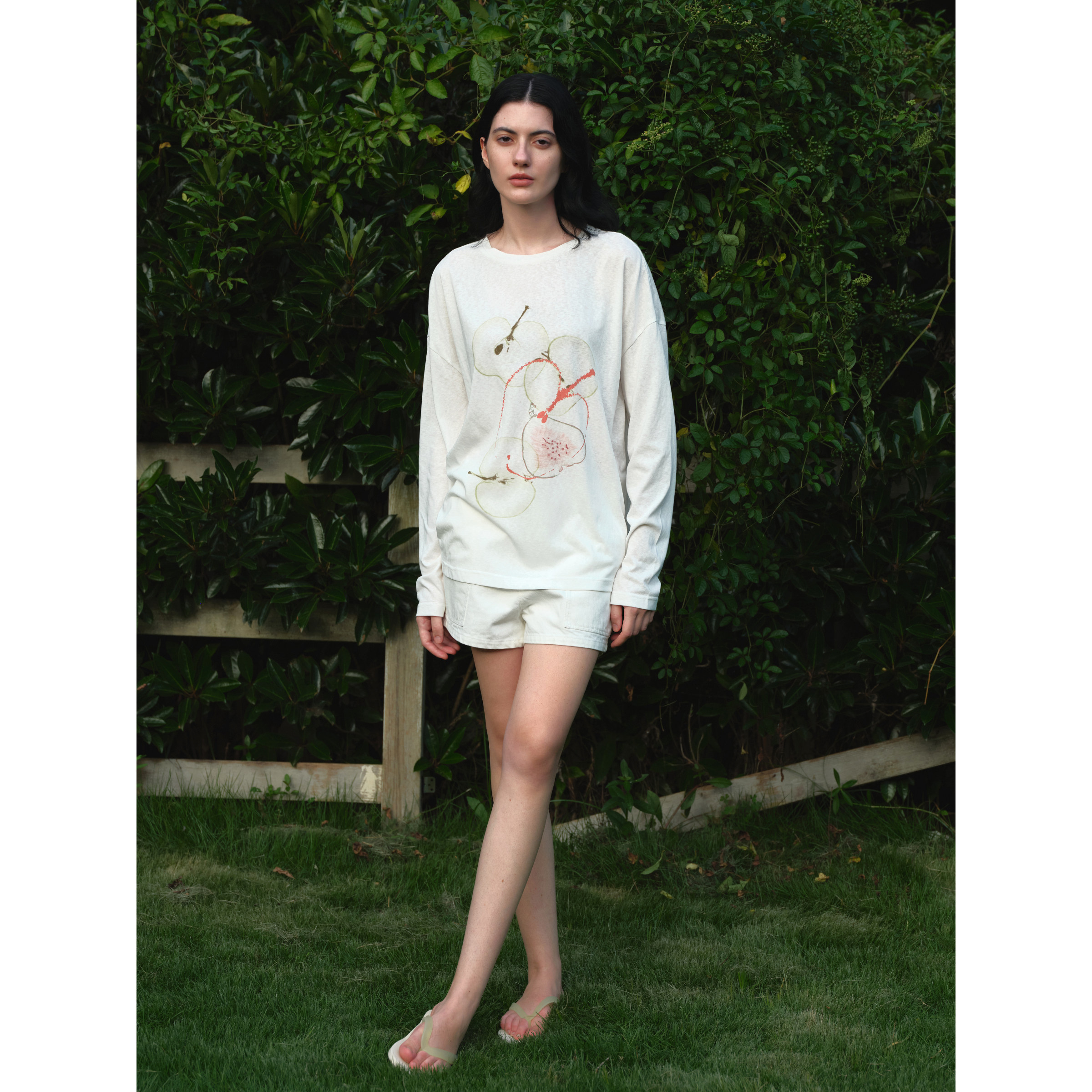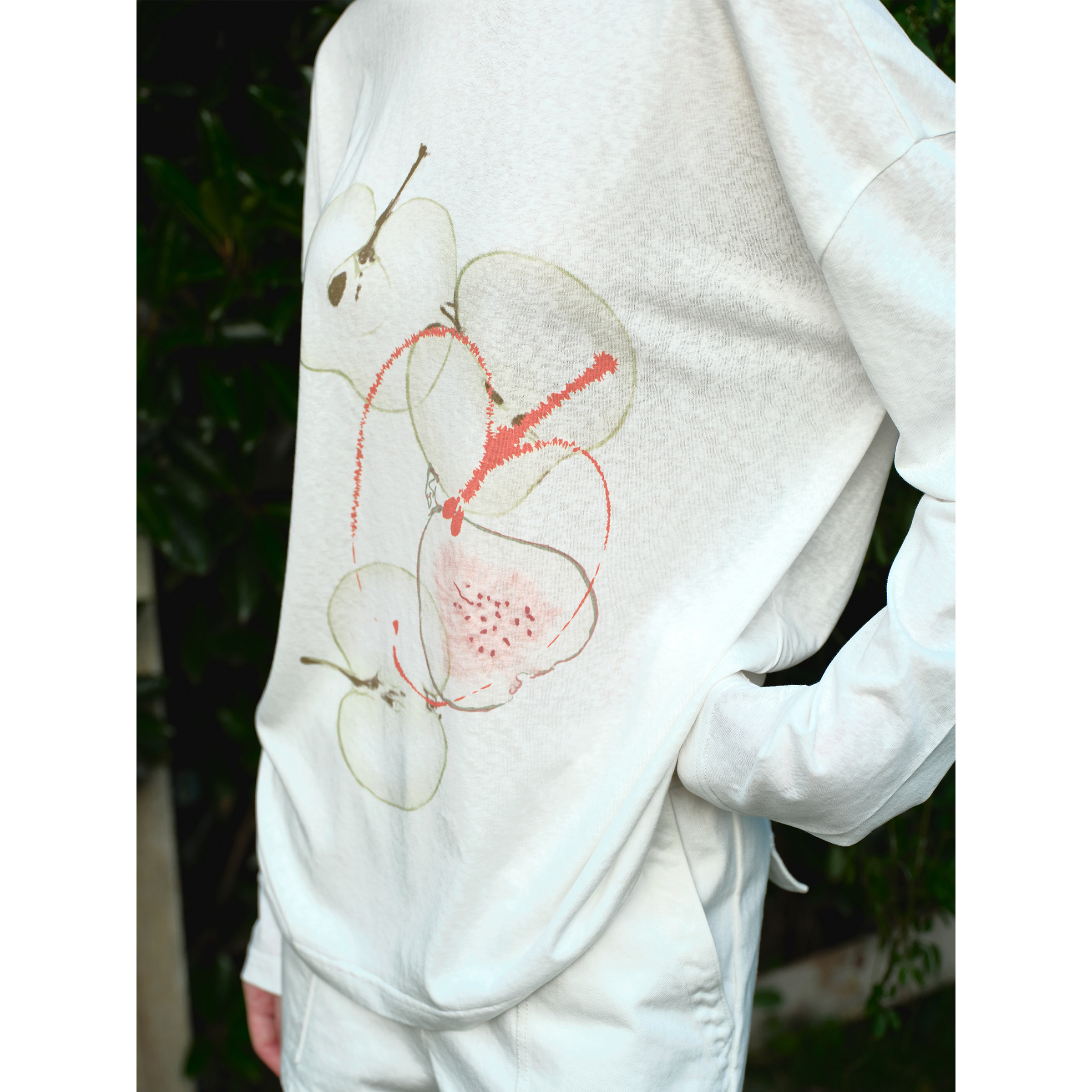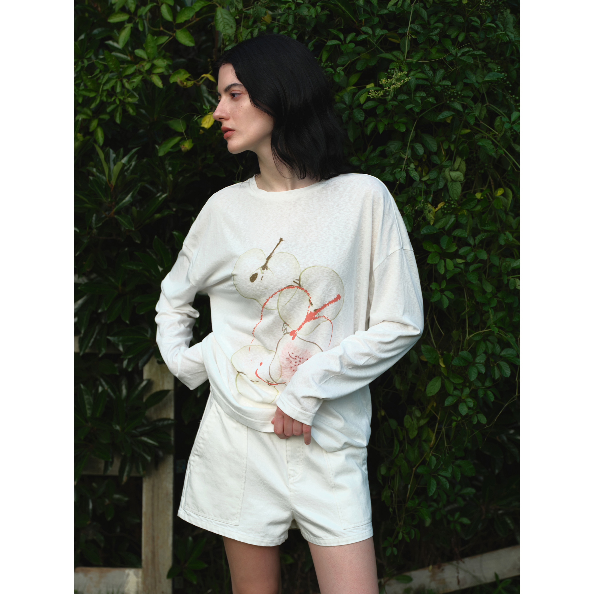 📚 EviStub 亚麻棉混纺雪花竹节肌理水果印花防晒罩衫长袖T恤女秋季
