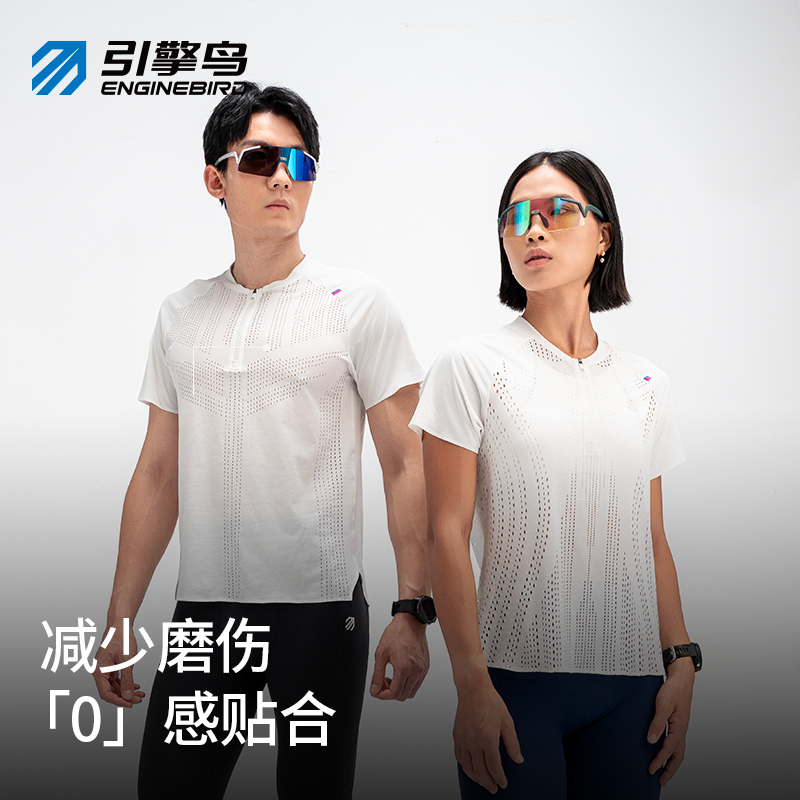 📚 引擎鸟半拉链风洞越野短袖速干T恤男女健身训练马拉松跑步半袖